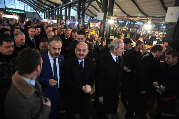 Müezzinoğlu, daha sonra Bursa Valisi İzzettin Küçük, Bursa Büyükşehir Belediye Başkanı Recep Altepe, eski İçişleri Bakanı ve AK Parti Bursa Milletvekili Efkan Ala, İnegöl Belediye Başkanı Alinur Aktaş ve beraberindekilerle12 bin metrekarelik pazar yerinin açılış kurdelesini kesti.