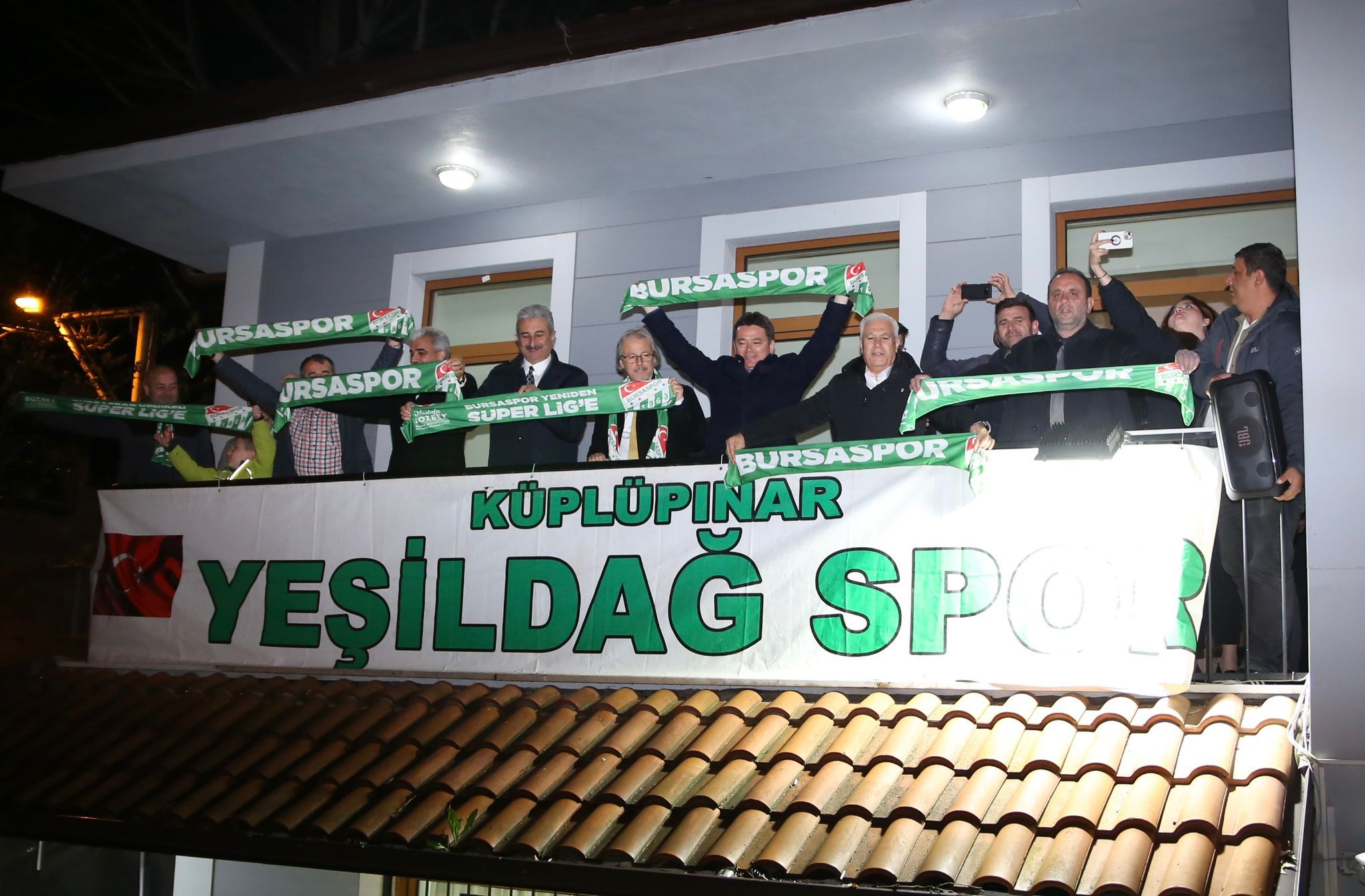 Seçim sonuçlarının belli olmasının ardından Kent Meydanı’nda, Osmangazi Belediye Başkanlığı seçiminde ipi göğüsleyen Erkan Aydın ile birlikte vatandaşlarla buluşan Bozbey, burada da Bursasporlu taraftarlarla karşılıklı “Yeşil beyaz, en büyük Bursa” tezahüratı yaptı.