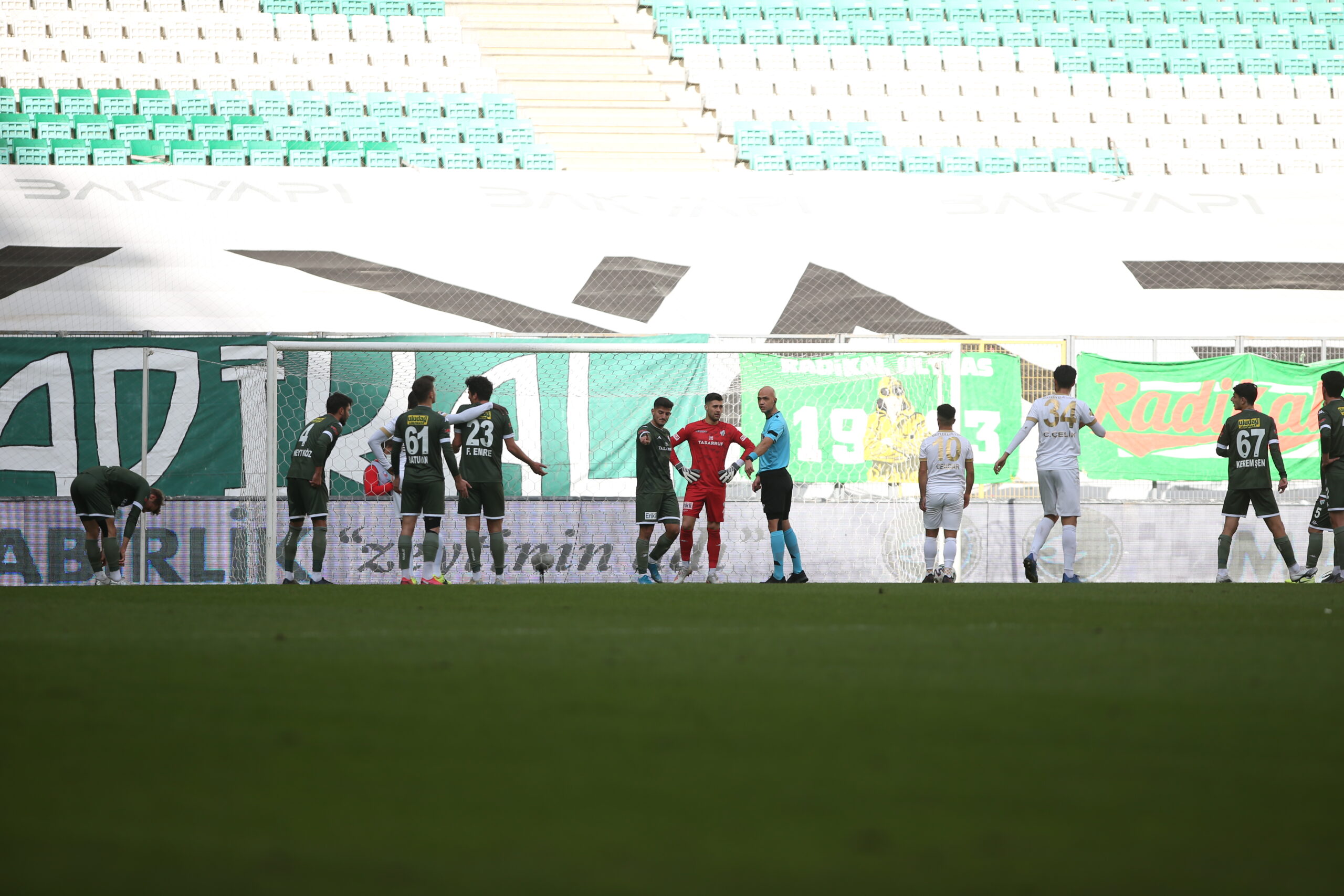 Bursaspor-Akhisarspor maçının ilkyarısını hakem Yiğit Arslan’ın kararları damga vurdu…