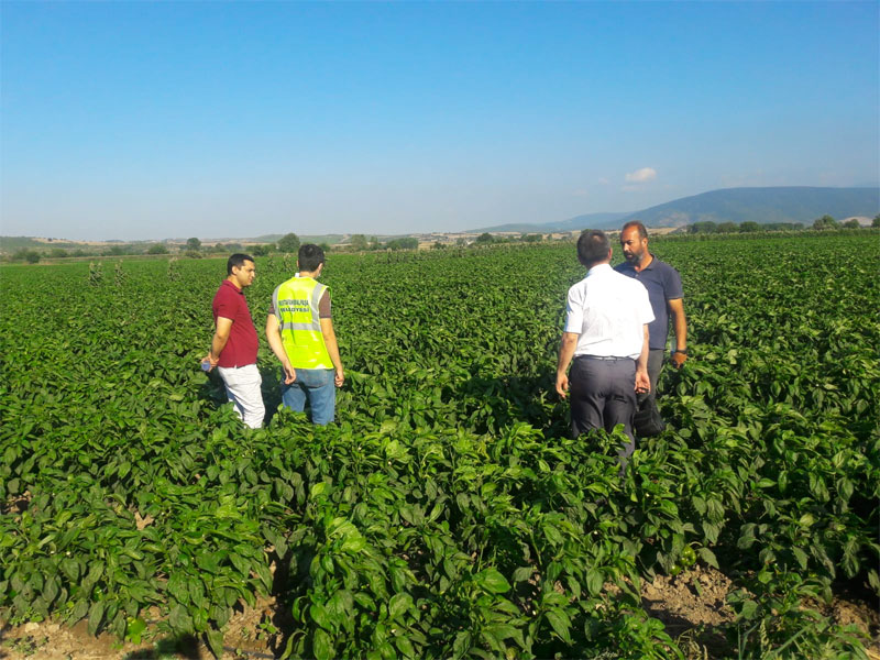 Belediye Başkan Yardımcısı Erol Pektez ve Tarımsal Hizmetler Müdürlüğü ekipleri ilçede hem önder hem de bilinçli çiftçi tanımına uyan belediye meclis üyesi ve tarım komisyonu üyesi Zahir Ferik’in Adaköy mahallesinde ürettiği salçalık domates, kapya biberi, California wonder biberi ve karpuz tarlalarına ziyarette bulundu.