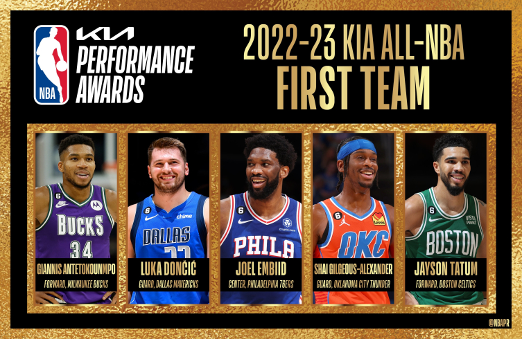 En iyi 5: Giannis Antetokounmpo (Milwaukee Bucks), Jayson Tatum (Boston Celtics), Joel Embiid (Philadelphia 76ers), Shai Gilgeous-Alexander (Oklahoma City Thunder), Luka Doncic (Dallas Mavericks)