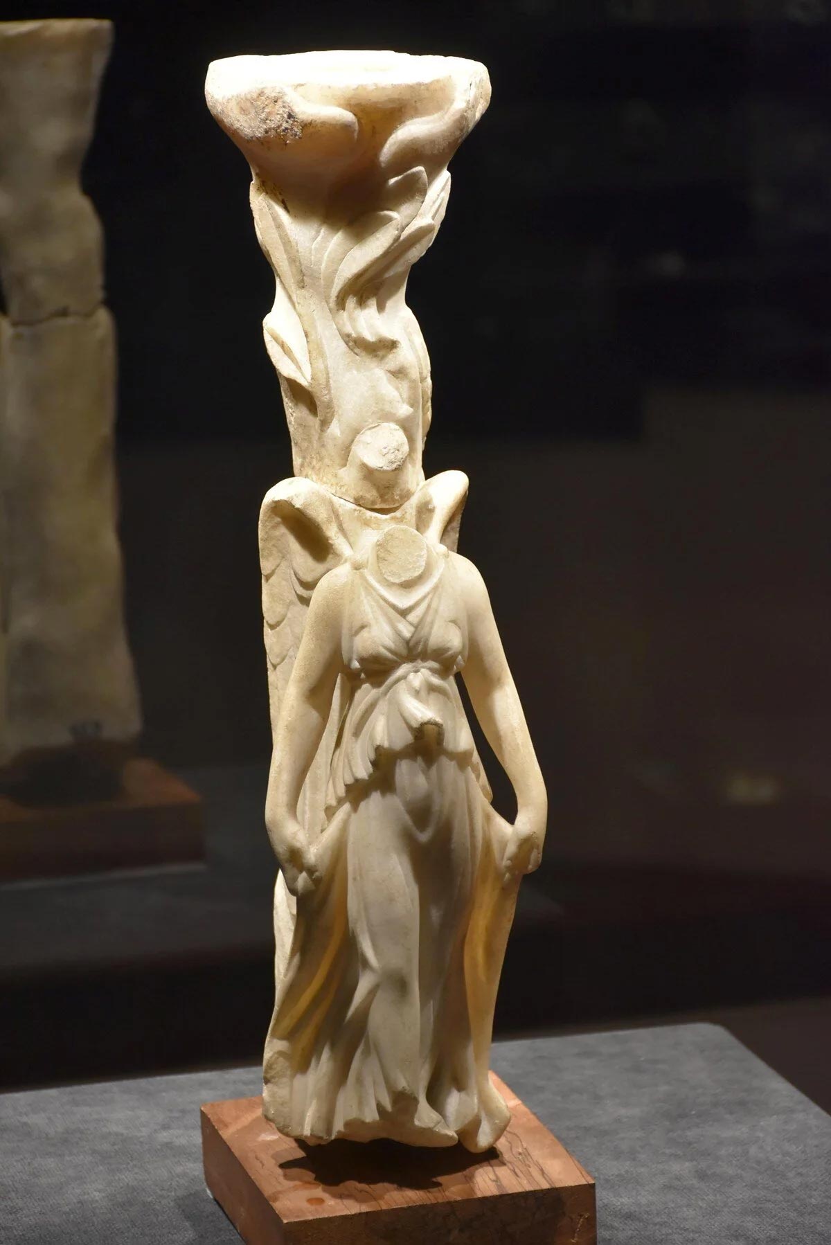 Geçmişte mobilyanın ayağı olarak kullanıldığı belirtilen heykel ile ilgili bilgi veren İzmir Arkeoloji Müzesi Müdürlüğü Uzmanı Elvan Tural Tercan, “1925 yılında bulunmuş. Zaferle özdeşleşmiş Nike tanrıçasına ait bir eser. Olimpos’tan önceki tanrılardandır. Annesi ve babası, Zeus öncesi tanrılardan. Törenlerde, zaferi simgeleyen tanrıçadır. Bergama’da bulunup, müzemize getirilmiş. 1 asır sonra da ziyaretçiyle buluştu. Mermer malzemeden yapılmış. Kutsal bir masaya ait ayak. İlgi çok yoğun. Ziyaretçi eserleri merak ediyor, bu da bizi mutlu ediyor” dedi.