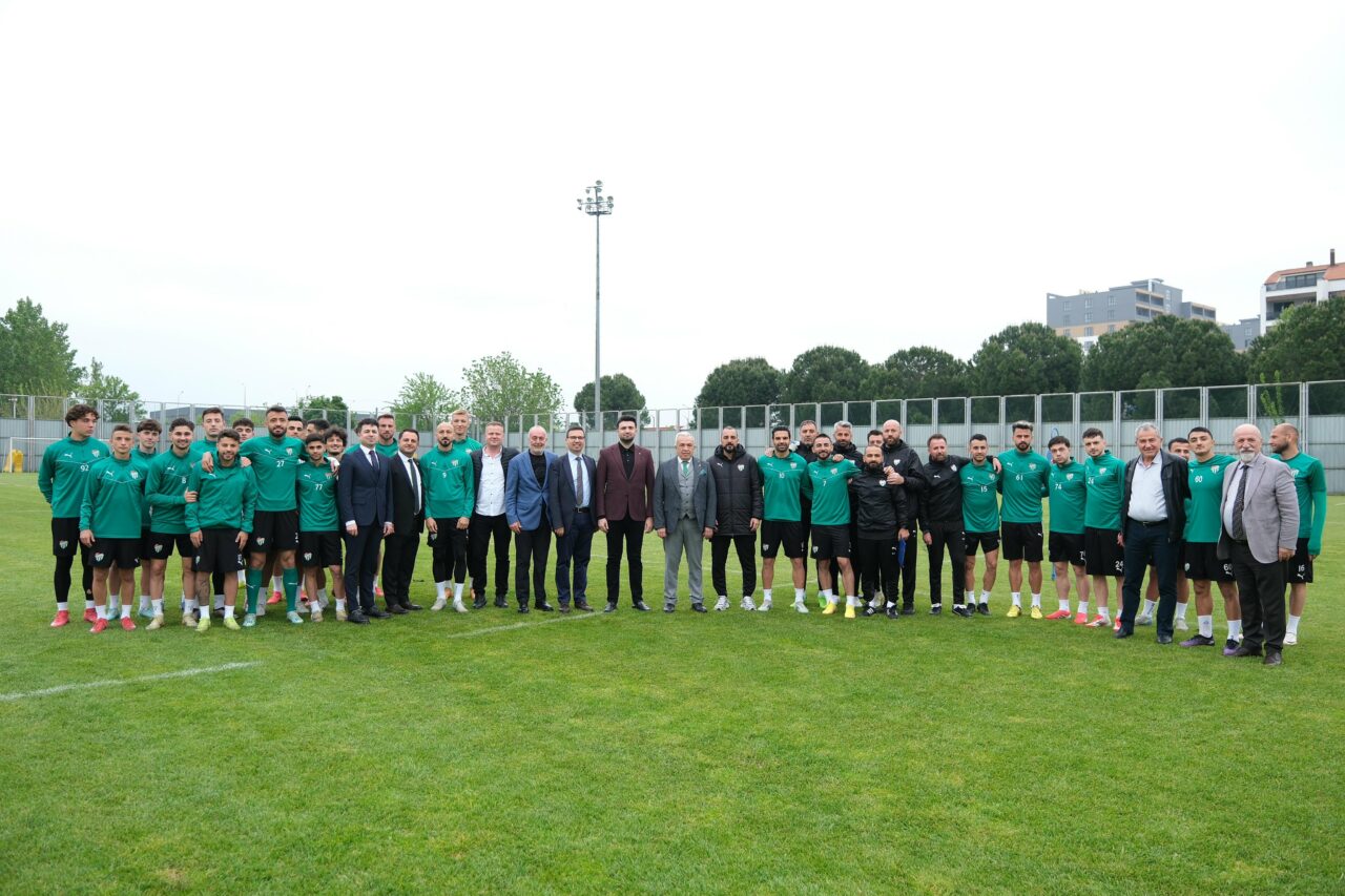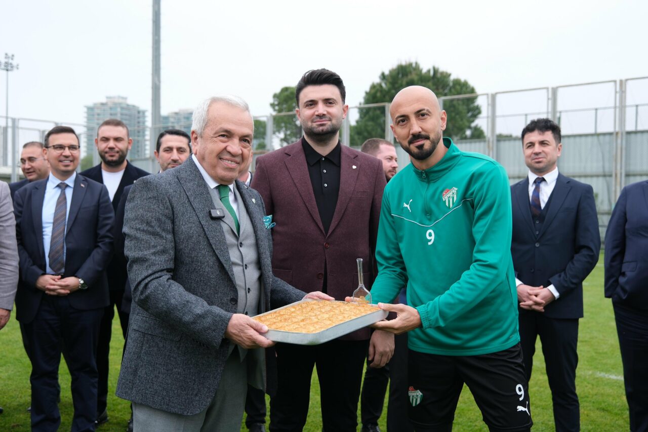 Özlüce İbrahim Yazıcı Tesisleri’nde gerçekleşen ziyarette, Nilüfer Belediye Başkanı Şadi Özdemir kulübü şampiyonluğundan dolayı bir kez daha kutlarken Bursaspor Başkanı Enes Çelik de kendisine desteklerinden dolayı plaket takdim etti.