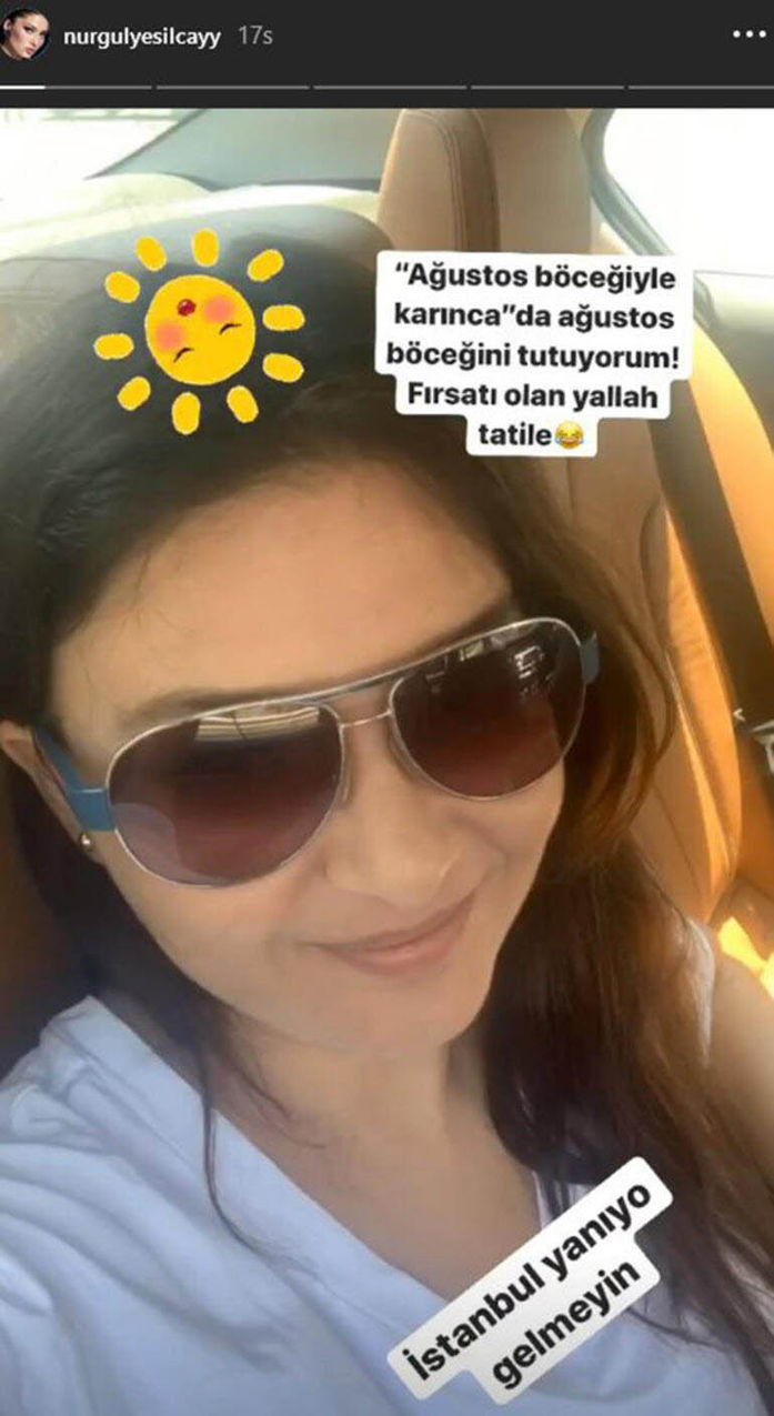 Sosyal medya hesabından paylaşım yapan oyuncu, Ağustos Böceği ile Karınca masalına gönderme yaparak, “Ağustos Böceği ile Karınca’da Ağustos Böceği’ni tutuyorum. Fırsatı olan tatile… İstanbul yanıyor, gelmeyin” notunu düşerek takipçilerini uyardı.