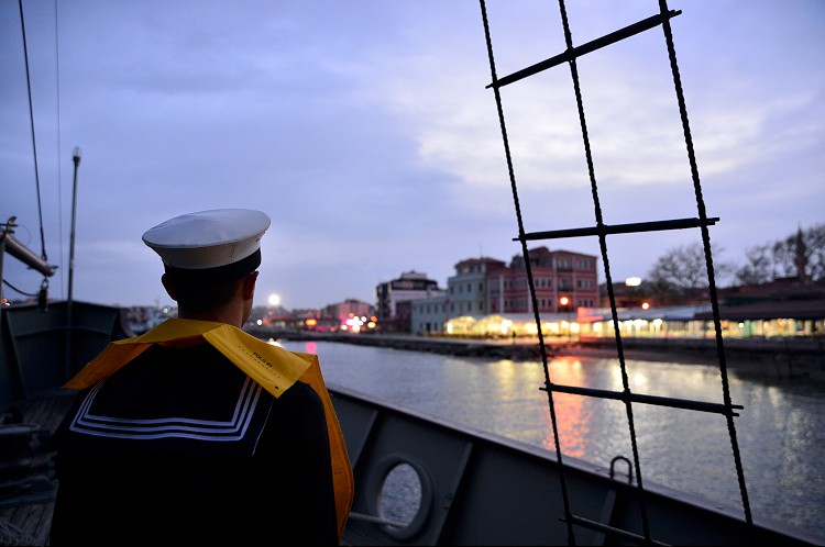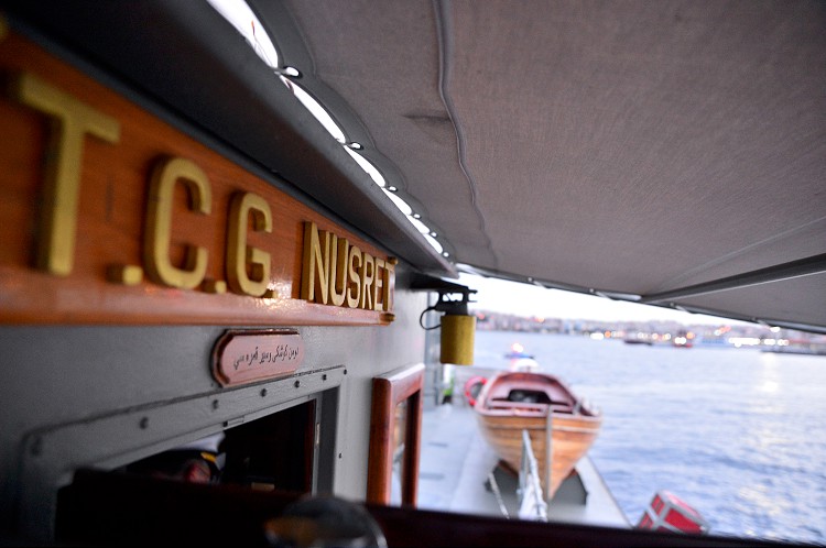 Çanakkale Deniz Müzesi Komutanlığı Yüzer İskelesi’nde demirli bulunan “TCG Nusret (N-16)”, mayınlarını döktüğü rotada ilerledi.