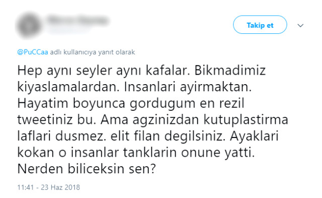 Güzellik, temizlik, ferahlık, asalet geliyor. Ayakkabı kokusu ülkeden gidiyor.” sözleriyle paylaşan yazar ve sosyal medya fenomeni Pucca’ya tepki mesajları yağdı.