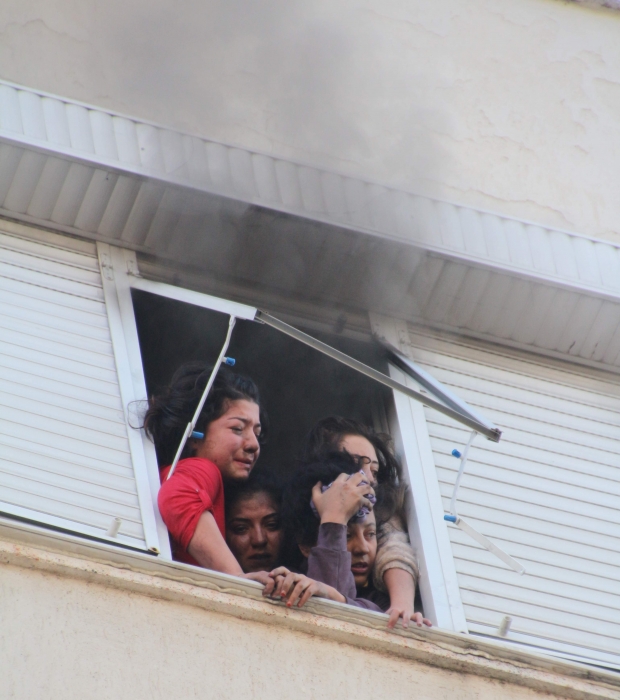 Olay Aydın Efeler ilçesi kurtuluş Mahallesi Sağlık Caddesi’nde meydana geldi. Bir apartmanın 6. Katında sabahleyin dumanlar yükselmeye başladı. Durumu fark eden vatandaşlar itfaiye ve polise haber verdi. Olay yerine ilk varan trafik polisi Müslüm Bahadır Lale, kız öğrencileri kurtarmak için 6. Kata çıktı ancak kapıyı açamadı. Olay yerine çağrılan itfaiye ekipleriyle birlikte daireye girilebildi. Yanan daireden çıkarılan öğrencilere ilk müdahalesi olay yerinde yapıldı. Kız öğrencileri ilk kurtarmaya gelen ve daireye giren polis memuru Müslüm Bahadır Lale de yoğun dumandan etkilendiği içn öğrencilerle birlikte hastaneye kaldırıldı. Dumandan etkilenen polis memuru ve kız öğrenciler Hatice A., Meryem G., Selda Ş. Ve Arzu Ş. kaldırıldıkları Aydın Atatürk Devlet Hastanesi’nde müşahede altına alındı. Polis ve öğrencilerin durumunun iyi olduğu bildirildi.
