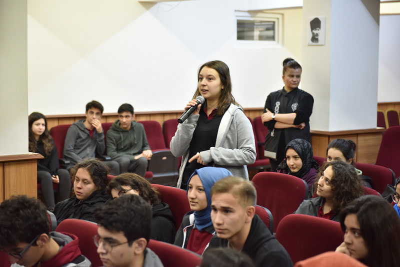 Okulun konferans salonundaki söyleşide İlçe Milli Eğitim Müdürü Mustafa Efe, Şube Müdürü Mehmet Işık, Okul Müdürü İsmail Balım, öğretmenler ve öğrenciler yer aldı.