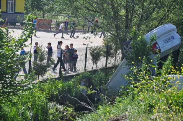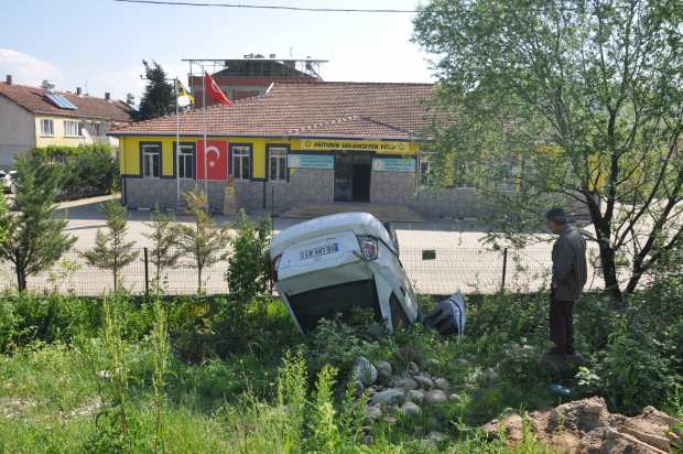 Şiddetli çarpışmanın etkisi ile kontrolden çıkan 411 plakalı otomobil, taklalar atarak okul önündeki su kanalına düştü. Kanala çakılan aracı gören mahalle sakinleri duruma müdahale etti.