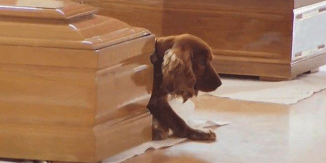 Dün bir spor salonunda düzenlenen toplu cenaze için bir günlük ulusal yas ilan edilirken, sahibinin tabutunun başından ayrılmayan bir köpek yürek burktu. Cocker Spaniel cinsi sadık köpek uzun süre tabutun başından ayrılmazken, talyan basını, köpeğin sahibinin kimliğinin bilinmediğini, sadece depremin en ağır hasarı verdiği yerlerden Accumoli’de hayatını kaybettiğinin bilindiğini yazdı. Uzmanlar, Accumoli’de zeminin depremden sonra 20 santimetre kaydığını söylüyor.