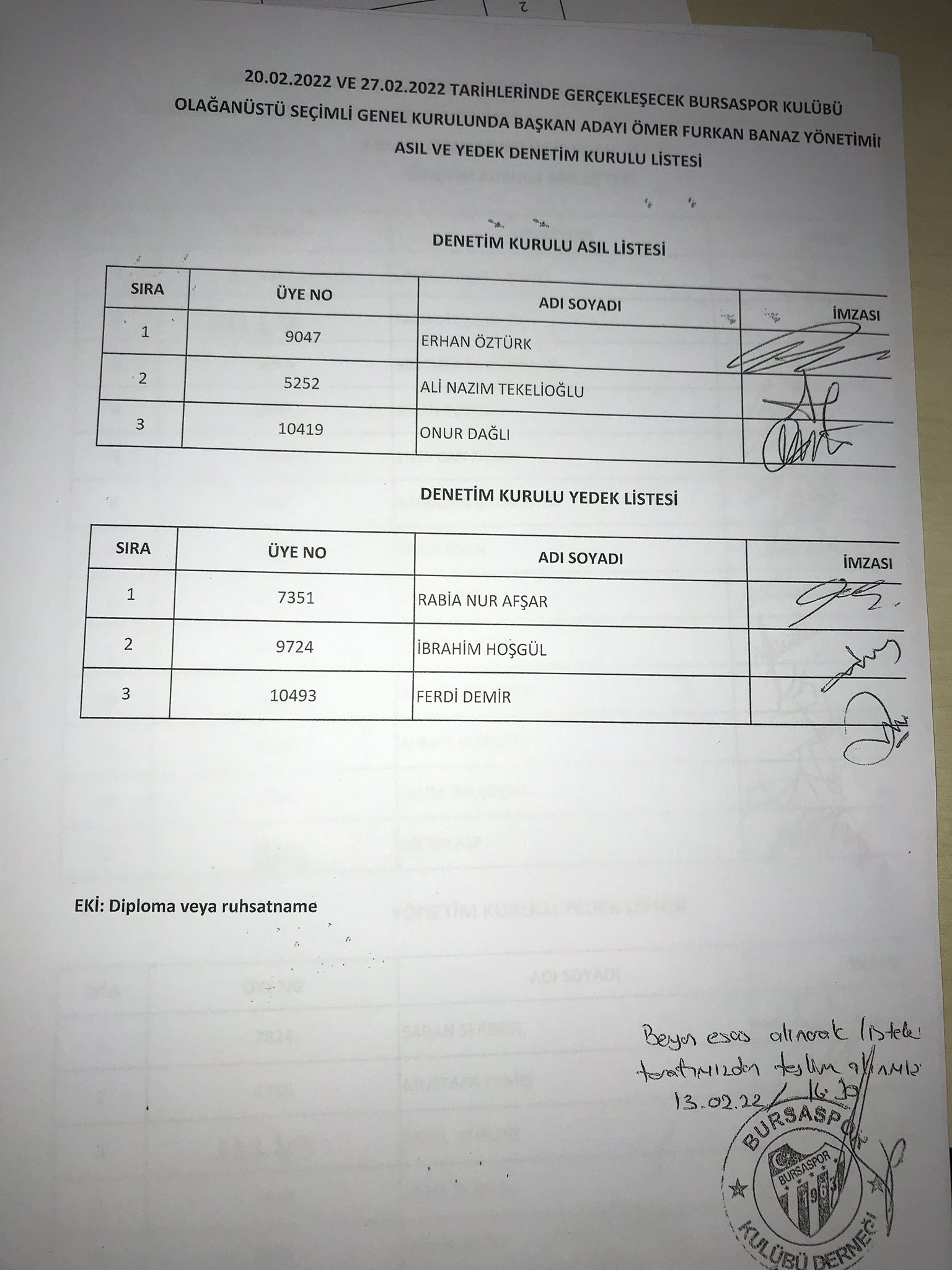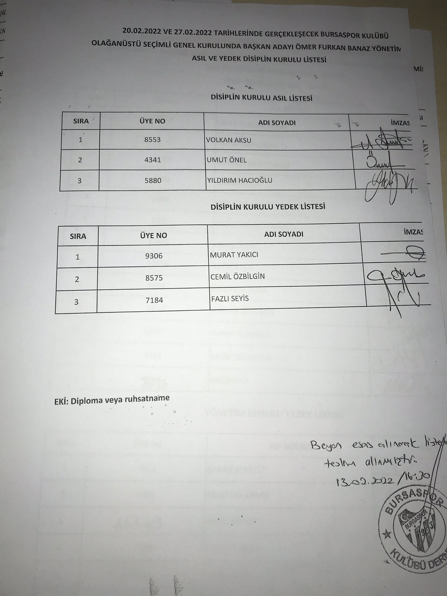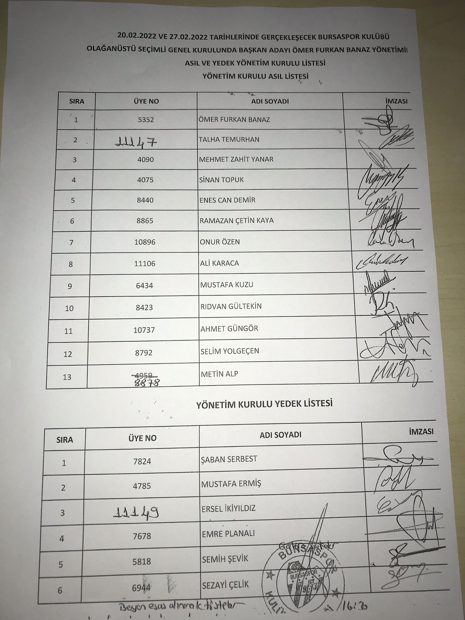 | ASİL | YEDEK |