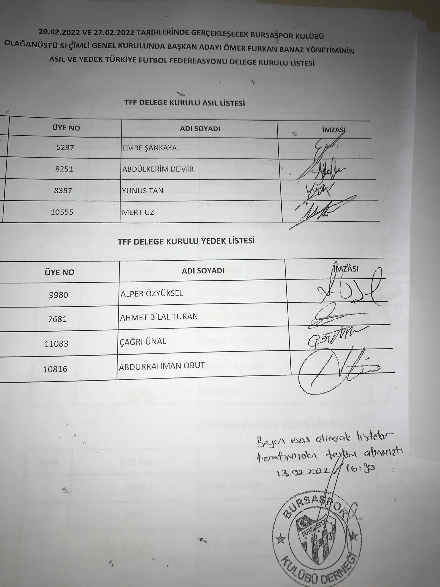 | TFF DELEGE LİSTESİ | |