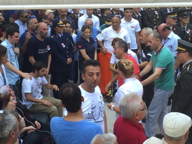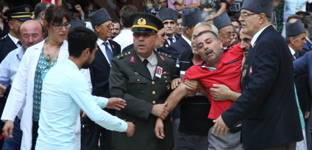 Şehidin babası Muhsin Aydın ve annesi Emine Aydın evlerinden ambulansa alınarak Garnizon Komutanlığı’na getirildi. Anne ve baba güçlükle ayakta dururken, şehidin cenazesi Ulucami’ye Türk Bayraklı 300 araçlık konvoy ile yola çıkarıldı.