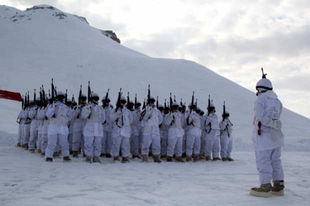 Sarp ve dağlık arazilerde 40 kilogramlık sırt çantaları ve teçhizatlarıyla bir metreyi bulan karda kilometrelerce yürüyen kursiyerler, kurs boyunca öğrendikleri ileri kayakçılık ve dağcılık teknikleriyle ustalıkla hareket etti, “düşman” hatlarına hiç beklenmedik noktalardan sızdı. “Düşmanları” yok eden komando adayları, aynı yollarla dost bölgeye geçti.