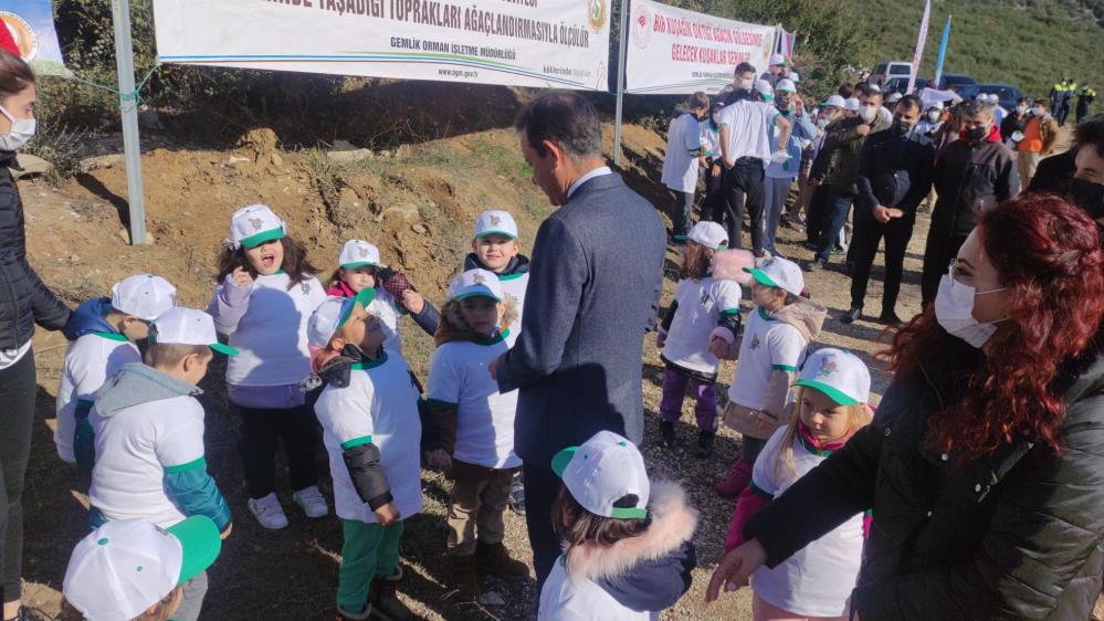 Orhangazi Orman İşletme Şefliği nezaretinde Orhangazi’de bu yıl 11 Kasımda 5 bin adet fıstık çamı toprakla buluştu. Protokol üyeleri öğrencilerle birlikte fidanları toprağa yerleştirip ilk can suyunu da verdi.