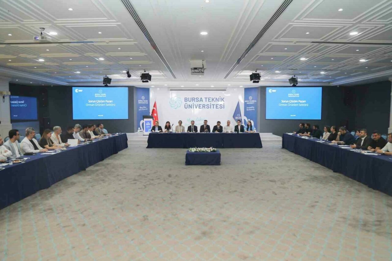 “Sanayiyi güçlendiren, sanayiden güç alan üniversite” hedefiyle çalışmalarını sürdüren Bursa Teknik Üniversitesi (BTÜ), Türkiye’de bir ilk olan “Sorun Çözüm Pazarı” projesini 2024’ten itibaren uyguluyor. Sektörlere özel toplantılar düzenleyerek, ilk ağızdan sorunları dinleyen BTÜ akademisyenleri, saniyeye nefes aldıracak projeler üretiyor. Otomotivin ardından tekstil sektörü ile süren Sorun Çözüm Pazarı, bu kez orman sektörünün temsilcilerini ağırladı. Mimar Sinan Yerleşkesi Turkuaz Salon’da gerçekleşen Sorun Çözüm Pazarı lansmanına; BTÜ Rektörü Prof. Dr. Naci Çağlar, Rektör Yardımcısı Prof. Dr. Sinan Uyanık, Bursateknopark Genel Müdürü Prof. Dr. Ayşe Bedeloğlu ve akademisyenler, orman sektörünün temsilcileri ile bir araya geldi. Toplantıda, firma temsilcileri tek tek söz alarak sektörde karşılaştıkları sorunları ve BTÜ’den beklentilerini dile getirdi.