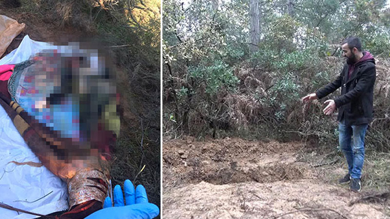 Gençlerin tarif ettikleri yere giden polisler, koli bandı ile bantlanmış battaniye içinde bir kadın cesedi ile karşılaştı. Birkaç gün önce öldürülerek ormanlık alana gömüldüğü, kadının 35-40 yaş arasında olduğu ve başına aldığı bir darbe sonucu öldüğü tahmin ediliyor. Olay yeri inceleme ekipleri ve Cumhuriyet Savcısının incelemelerinin ardından talihsiz kadının cesedi Adli Tıp Kurumu morguna kaldırıldı. Kadının üstünden kimlik çıkmadığı öğrenildi.