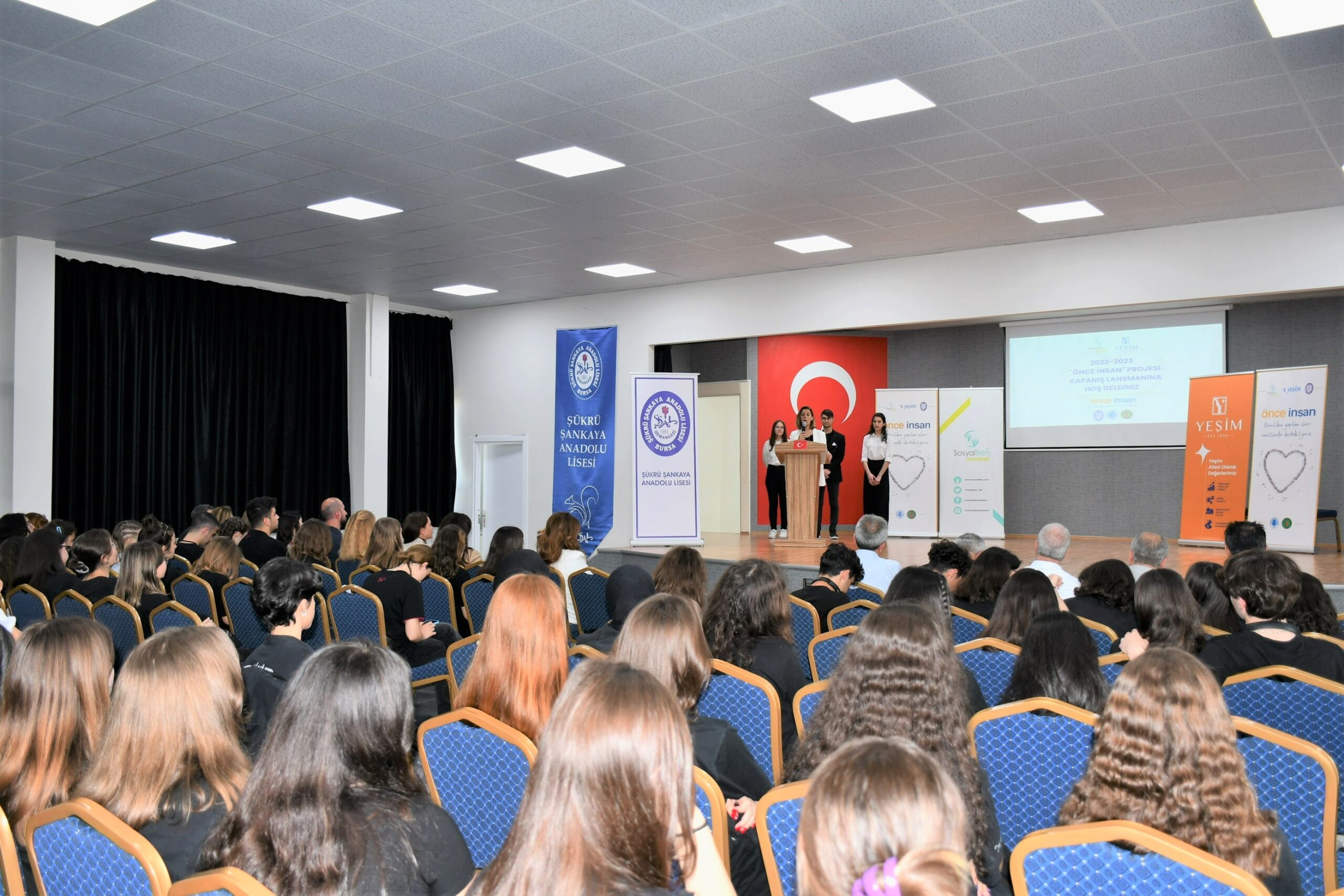 Yeşim Grup, SosyalBen Akademi ve Şükrü Şankaya Anadolu Lisesi’nin örnek iş birliğiyle 2019 yılında yola çıkan ve 30 öğrenci ile hayata geçirilen “Önce İnsan – Gönülden yapılan işleri nesillerdir destekliyoruz” projesi, lise sıralarındaki gençlere hayat boyu sürdürülebilir bir sorumluluk kazandırmayı hedefliyor. Proje, kurumlar arasındaki öğrenmeyi, birbirini güçlendirmeyi desteklediği gibi akranlar arası bir deneyim paylaşımına da zemin hazırlıyor. Özel okullarda ücrete tabi olan bu deneyimlere devlet okullarındaki çocuklar erişemiyor. Proje bu anlamda deneyimsel eşitliği sağlamak adına büyük önem taşıyor.