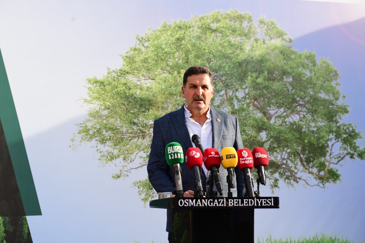 Birlikte yeşeren bir geleceğe katkı sunmaya çalıştıklarını dile getiren Osmangazi Belediye Başkanı Erkan Aydın, “Baktığınız zaman, kitap da fidan da aslında insanlığın ve insanoğlunun geleceği demektir. Bir kitap, bir gencin veya bir insanın ömrünü, hatta geleceğini şekillendirebilir. Aynı şekilde bir fidan da insanın rahat nefes almasına, oksijene, suya ve doğanın kendini yenileyebilmesine büyük katkı sağlar. Ben parlamentoda milletvekilliği yaptığım dönemde, defalarca düz kesimin doğru bir iş olmadığını meclis kürsüsünden dile getirdim. Araştırma ve soru önergeleri verdim. Çünkü ben de bir ormancı çocuğuyum. Rahmetli babam yüksek orman mühendisiydi. Eskiden damgalama yöntemiyle yaşlanmış, ömrünü doldurmuş ağaçlar kesilir; yenileri ağaçlandırılarak doğanın döngüsü korunurdu. Ancak düz kesim yaptığınızda yaşlı, genç, sağlıklı, hasta fark etmeksizin olan her şeyi kesmiş oluyorsunuz. Kırk, elli, altmış sene sonra bir gün yok ettiğimiz yerin geri gelmesini bekleyeceğiz” dedi.