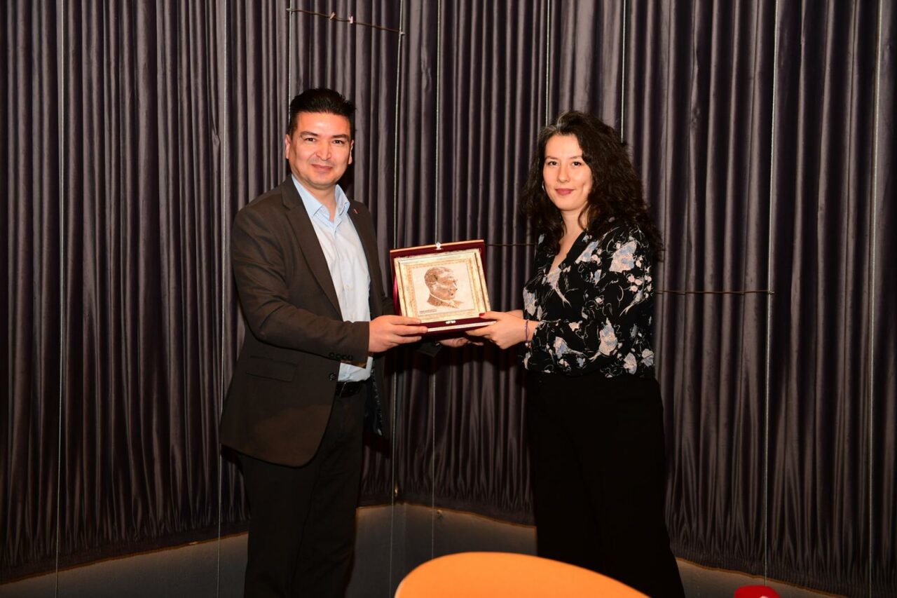 Söyleşinin ardından Osmangazi Belediyesi Basın Yayın ve Halkla İlişkiler Müdürü Süleyman Çavlı, Esra Türker ve Hatice Nur Derya’ya Atatürk plaketi takdiminde bulundu.