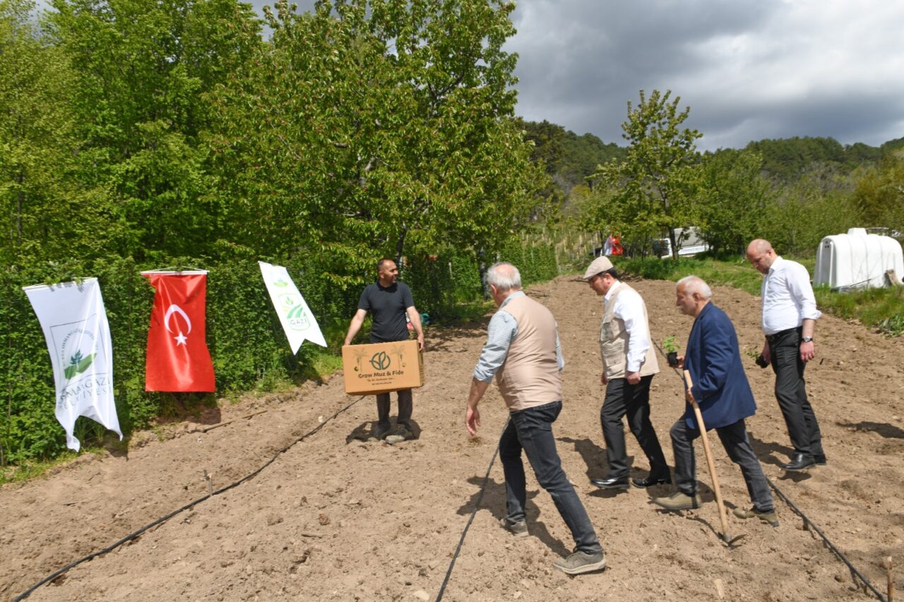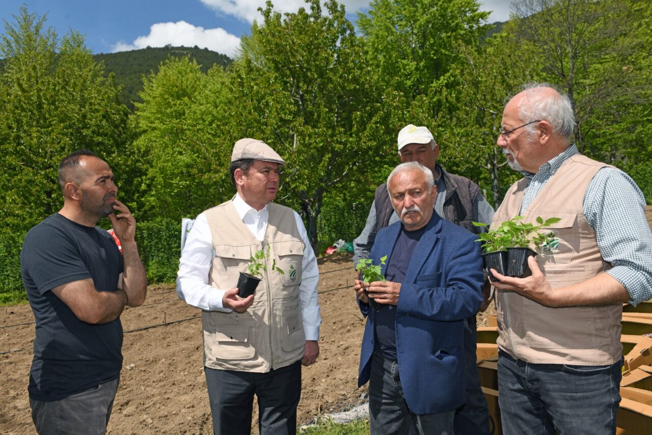 Ahududu fidelerini toprakla buluşturarak can suyunu veren Osmangazi Belediye Başkanı Erkan Aydın, “Tamamen organik yetiştiricilik yapmak istiyoruz. İlaçlama kesinlikle yapmayacağız. Doğal gübre kullanacağız. İhracat odaklı hareket edeceğiz. Çiftçinin, köylünün para kazanması birinci hedefimiz. Bu çalışmamızı burada başarılı kılabilirsek, bundan sonraki süreçte, bütün dağ köylerinde üretim başlatmak istiyoruz. Köylerde yaşayan gençlerimiz, kent merkezine gelip asgari ücret ile iş arıyor. Halbuki köylerinde ahududu gibi orman meyveleri yetiştiriciliğini yaparak, ciddi gelir elde edebilirler. İhracat için Türkiye pazarında yüksek talep var. Ancak doğru üretim teknikleri gerekiyor. Biz üreticilere, her türlü teknik, fiziki ve maddi desteği sağlayacağız. İlerleyen süreçte, yetiştirilen ürünlerin saklanması adına da bir soğuk hava deposunu inşa edeceğiz. Üreticilerimizin pazarda rekabet gücü elde etmesini amaçlıyoruz. Birkaç tüccar, kendi aralarında anlaşarak köylüden istediği fiyata ürününü alıyor. Bütün yılın emeği boşa gidiyor. Bu da çiftçimizin üretimdeki şevkini kırıyor. Durum böyle olunca, insanlar bağını, bahçesini bırakıp, fabrikalarda işçi olmaya gidiyor” dedi.