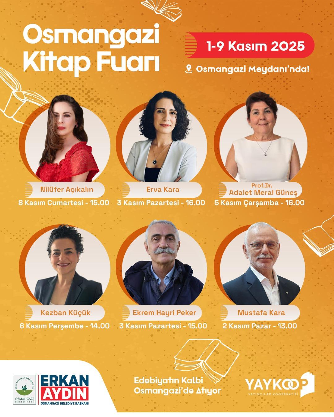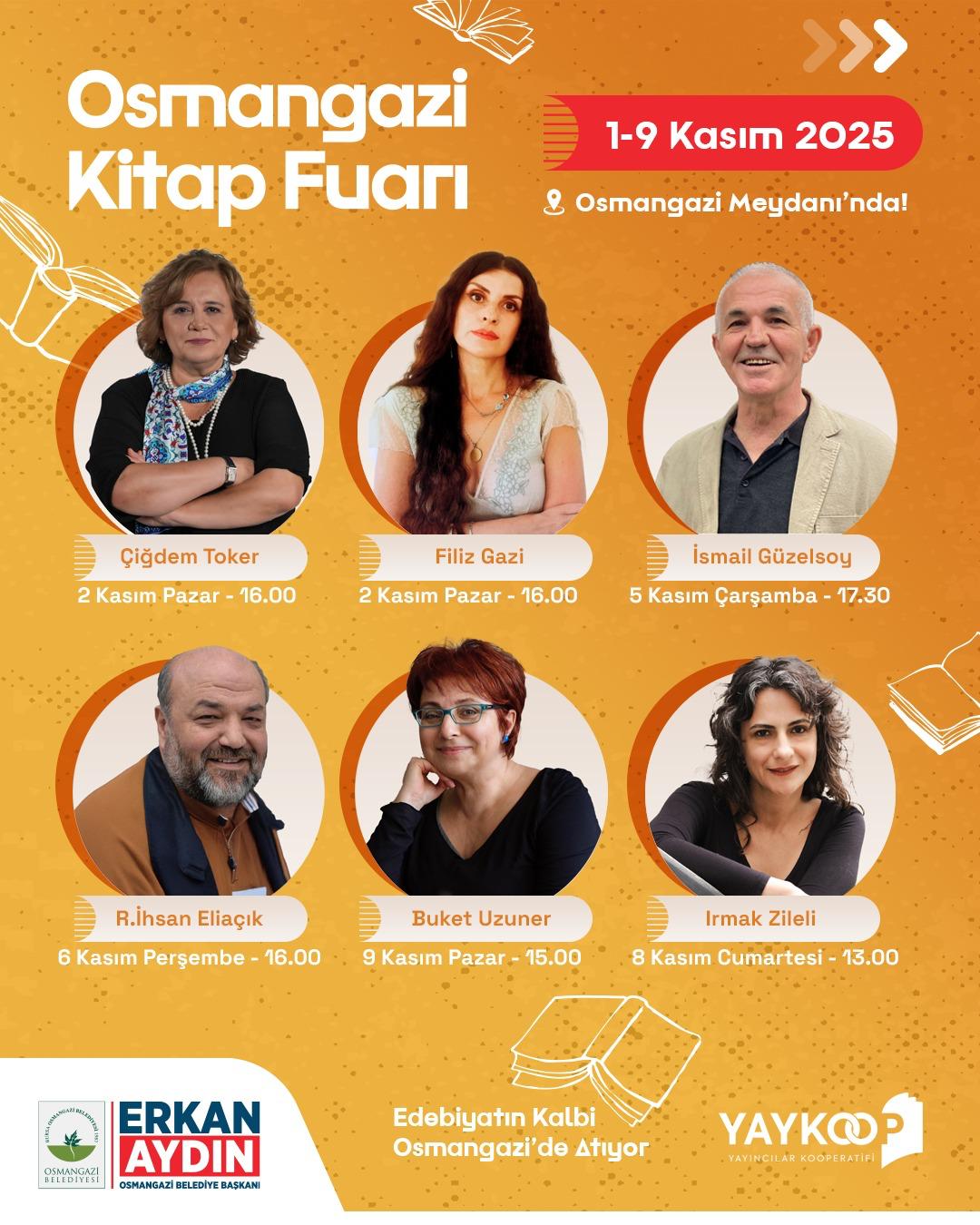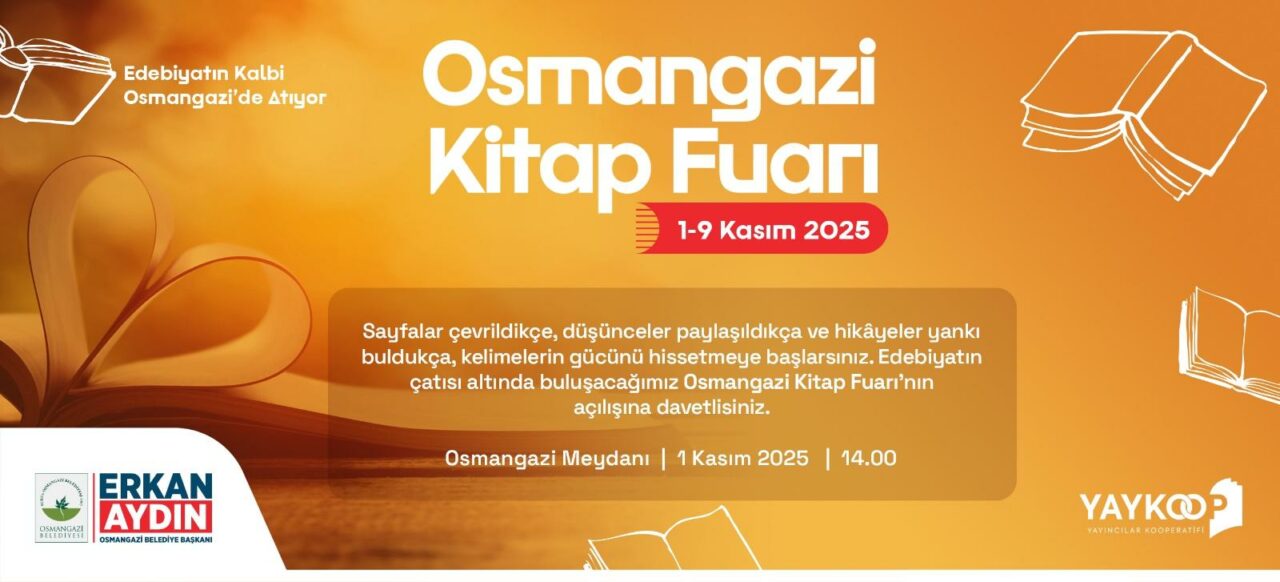 Osmangazi Belediyesi, bu yıl ilk kez düzenleyeceği Osmangazi Kitap Fuarı ile edebiyatın büyülü atmosferine ev sahipliği yapacak. YAYKOOP (Yayıncılar Kooperatifi) iş birliğiyle hazırlanan fuar, 1-9 Kasım tarihleri arasında Osmangazi Meydanı’nda kitapseverlerle buluşacak.