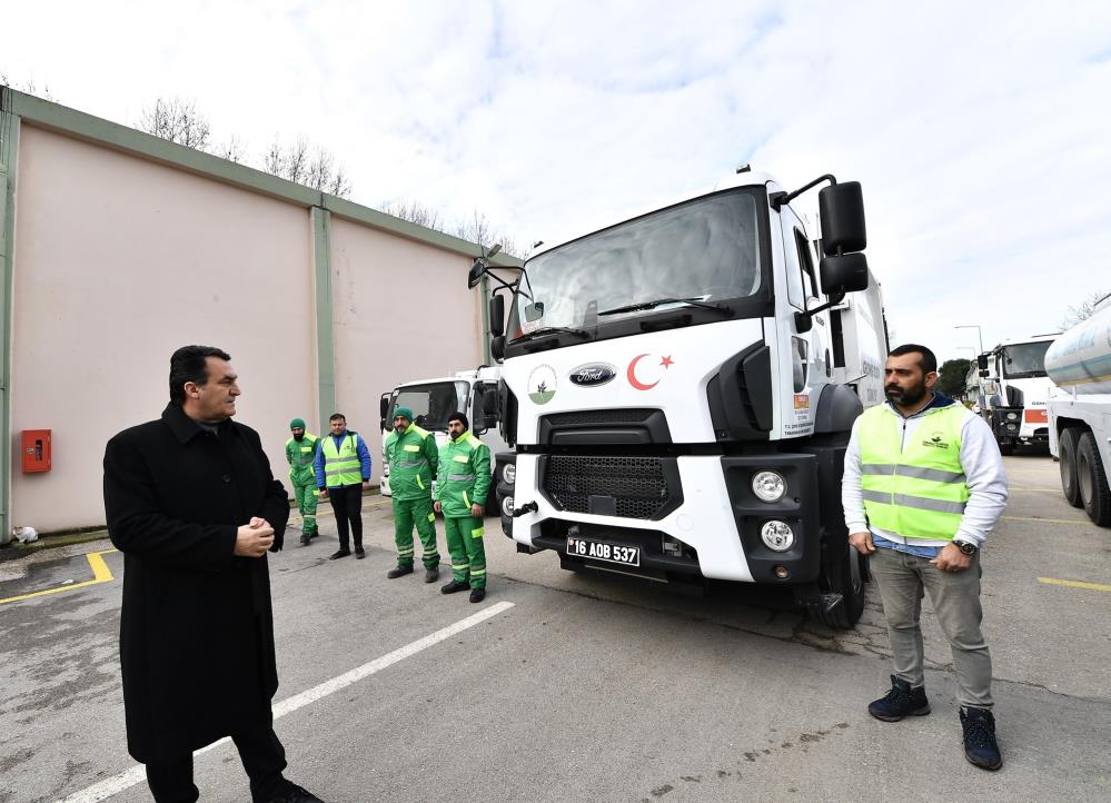 Depremin 6’ncı gününde Osmangazi Belediyesi’ne ait çöp kamyonları ve temizlik araçları da Gaziantep’e gitmek üzere yola çıktı. 4 çöp kamyonu ve 2 su tankeri, bölgeye ulaştığında İslahiye’deki temizlik çalışmalarına katkı koyacak. Osmangazi Belediye Başkanı Mustafa Dündar, çöp kamyonları ve temizlik araçlarını deprem bölgesine uğurlayarak çalışmalarında kolaylıklar diledi.