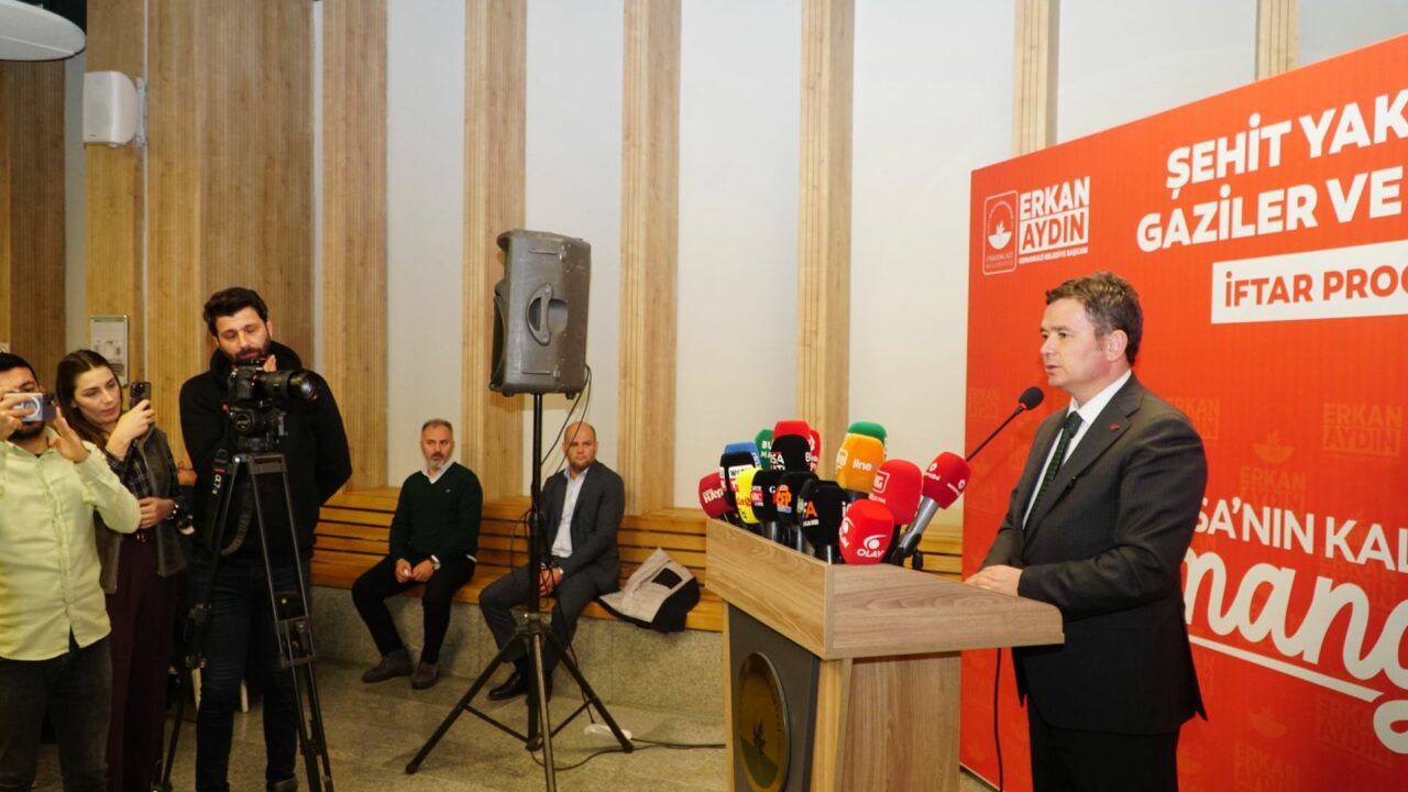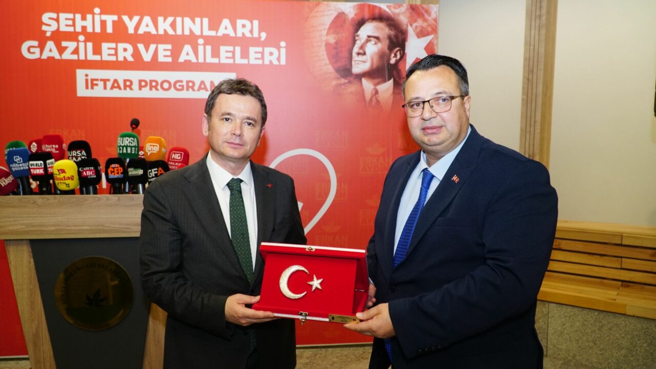 İftar öncesi konuşan Başkan Aydın, Türkiye’nin bugün bağımsız ve güçlü bir ülke olarak yoluna devam edebilmesinde şehitlerin ve gazilerin büyük payı olduğunu vurgulayarak, “Ezanlarımız okunuyorsa, bayrağımız özgürce dalgalanıyorsa, bu topraklarda huzur içinde yaşayabiliyorsak bunu başta Gazi Mustafa Kemal Atatürk ve silah arkadaşları olmak üzere tüm aziz şehitlerimize ve kahraman gazilerimize borçluyuz” dedi.