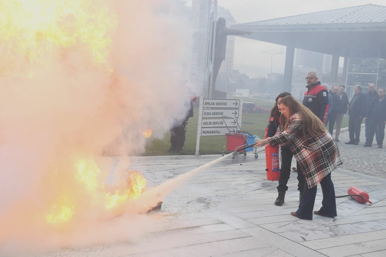 Afet İşleri Müdürlüğü personelinin yönlendirmesiyle Osmangazi Belediyesi merkez binası, 117 saniye gibi kısa sürede tümüyle tahliye edildi. Belediye binasının önünde toplanan personele Afet İşleri Müdürlüğü ekipleri, deprem ve yangın anında neler yapması gerektiğini uygulamalı olarak gösterdi. Ardından yakılan ateşe, doğru şekilde yangın söndürme tüpüyle nasıl müdahale edilmesi gerektiği anlatıldı.