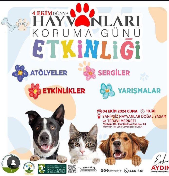 Osmangazi Belediyesi Sahipsiz Hayvanlar Doğal Yaşam ve Tedavi Merkezi’nde 4 Ekim Cuma günü saat 10.30’da gerçekleştirilecek olan atölyeler, sergiler, yarışmalar gibi birçok etkinlik ile hayvan haklarına ve doğal yaşamın önemine dikkat çekilecek.