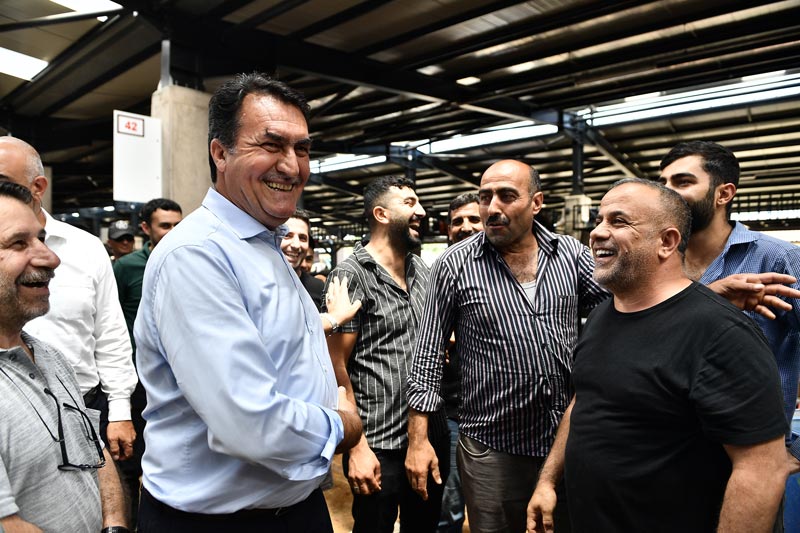 Osmangazi Belediye Başkanı Mustafa Dündar, Türkiye’nin en modern kurbanlık satış tesisi olan Veysel Karani Modern Kurban Satış Tesisi’ni ziyaret ederek satıcı ve vatandaşlarla bir araya geldi. Hayvan yetiştiricileri ile sohbet eden ve hayırlı satışlar dileyen Başkan Dündar, pazardaki hayvanları incelerken zaman zaman da satıcılar ve vatandaşlar arasındaki pazarlıklara da yardımcı oldu. Gerek hayvan yetiştiricileri gerekse vatandaşlar böyle modern bir kurban satış tesisini Bursa’ya kazandırdığı için Başkan Dündar’a teşekkürlerini sundu.