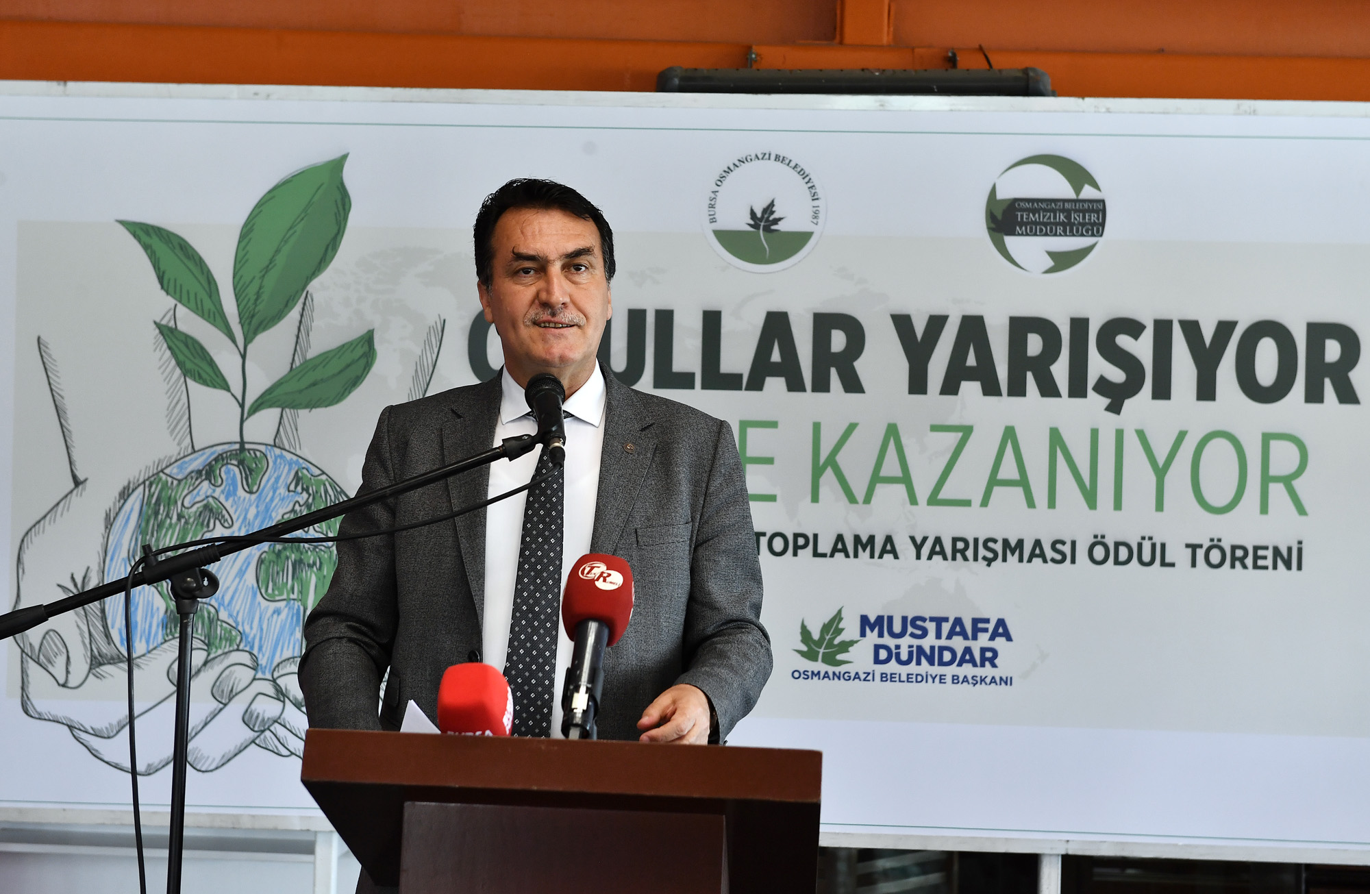 Belediye olarak yeşili ve çevreyi koruyan, sağlıklı ve temiz bir şehir için örnek projelere imza attıklarını belirten Osmangazi Belediye Başkanı Mustafa Dündar, ‘Yeniden Yeşil Bursa’ hedefiyle bugüne kadar 31 çevre projesini hayata geçirdiklerini ifade eden Başkan Dündar, “Bizler, her işi en iyi şekilde yapmaya çalışıyoruz. Özellikle yeşili ve çevreyi koruyan, sağlıklı, temiz bir şehir için ülkemizin en kapsamlı çevre projelerini ortaya koyuyoruz. Atık Getirme Merkezi Tebliğine göre Bursa’nın ilk 1’nci Sınıf Atık Getirme Merkezi’ni Demirtaş bölgesinde kurduk. İlk mobil atık getirme aracını 2016, ikinci mobil atık getirme aracını ise 2020 yılında hizmete aldık. Tüm dünyada giderek büyük bir çevre sorunu haline gelen ve E-Atık olarak nitelenen elektronik atıklar konusunda da 2008 yılından bu yana başarılı çalışmalar yürüten tek belediye olduk. Böylece belediyemiz, İstanbul Elektrikli ve Elektronik Atık Zirvesinde ‘E-Atık Kahramanı’ ödülüne layık görüldü. Ayrıca 2020 yılında 5’nci grup (Aydınlatma ekipmanları) kategorisinde Türkiye ikinciliği başarısı elde ettik. Bugüne kadar yaklaşık 117 bin 359 ton ambalaj atığı toplayarak 1 milyondan fazla yetişkin ağacı kesilmekten kurtardık” dedi.