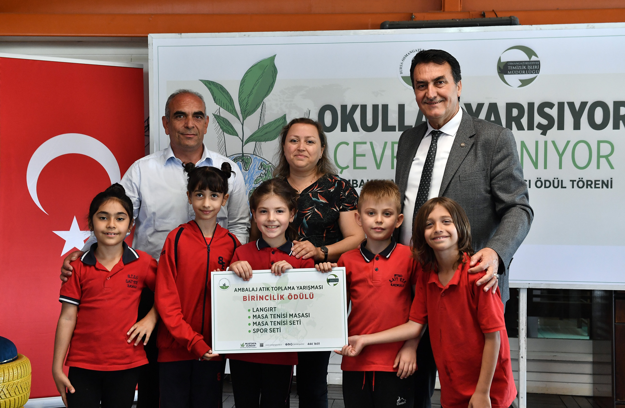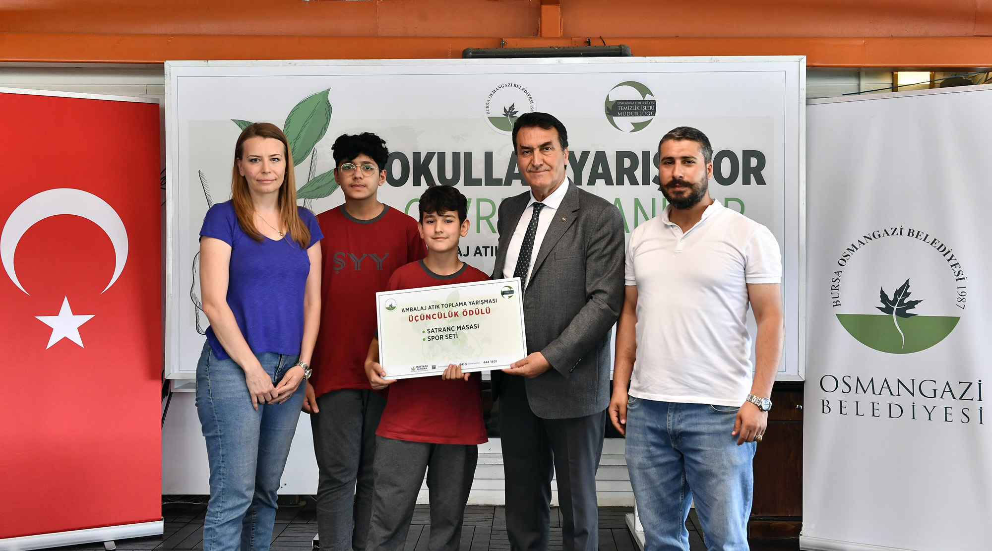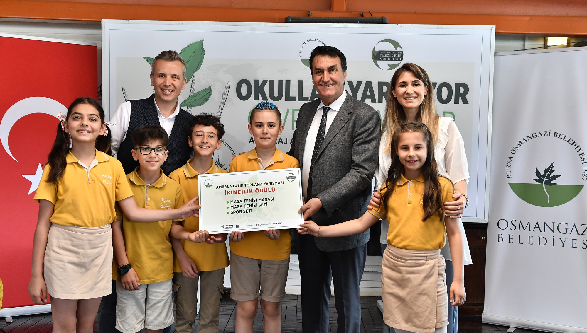 Osmangazi Belediyesi’nin İlçe Milli Eğitim Müdürlüğü işbirliğiyle düzenlediği ‘Okullar Yarışıyor Çevre Kazanıyor’ yarışmasında kazananlar belli oldu. Sukaypark Tesisleri’nde gerçekleşen ödül törenine Osmangazi Belediye Başkanı Mustafa Dündar’ın yanı sıra AK Parti Bursa İl ve İlçe Yöneticileri, Milli Eğitim Müdürlüğü yetkilileri, öğretmenler ve öğrenciler katıldı.