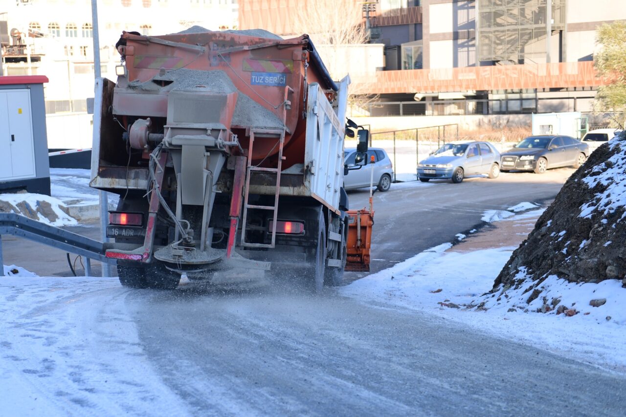 Kent genelinde etkili olan kar yağışının ardından yollarda meydana gelebilecek buzlanmalara ilişkin harekete geçen Osmangazi Belediyesi Fen İşleri Müdürlüğü ekipleri, ilçe sınırlarında yer alan bölgelerdeki yollarda tuzlama çalışmalarını sıklaştırdı.