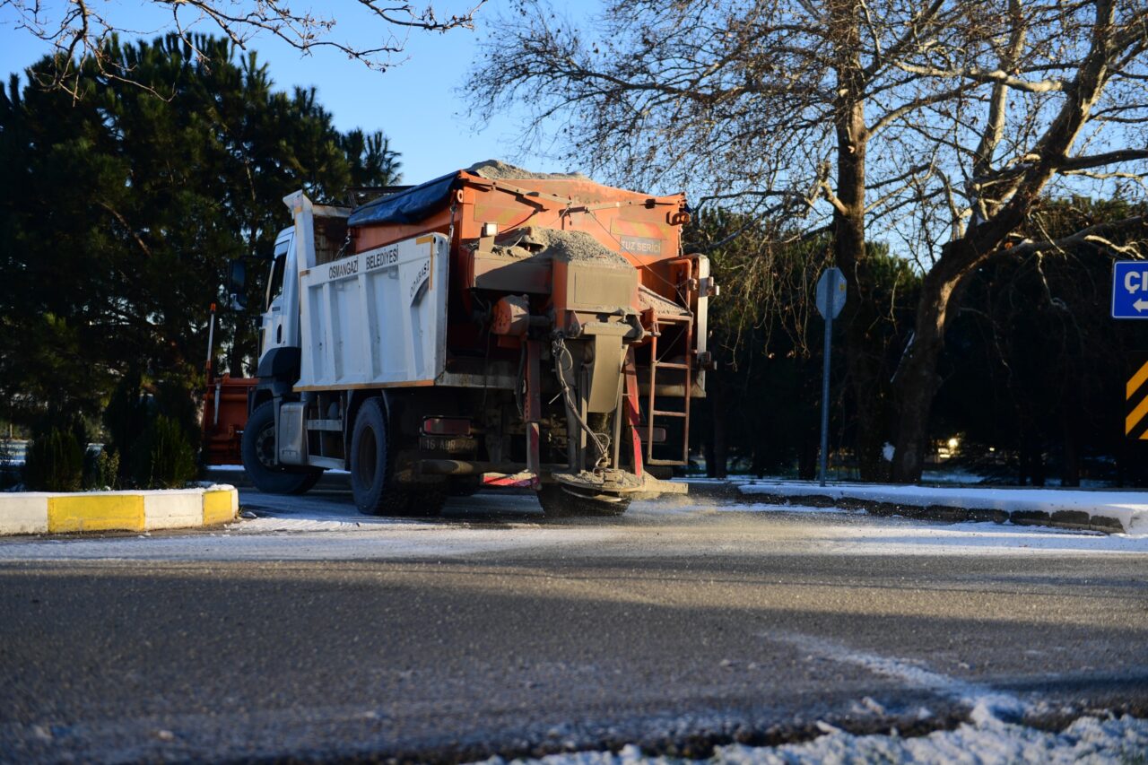 Osmangazi Belediyesi, olumsuz hava koşullarının ulaşımı aksatmaması için çalışmalarını yoğun bir şekilde sürdürüyor.