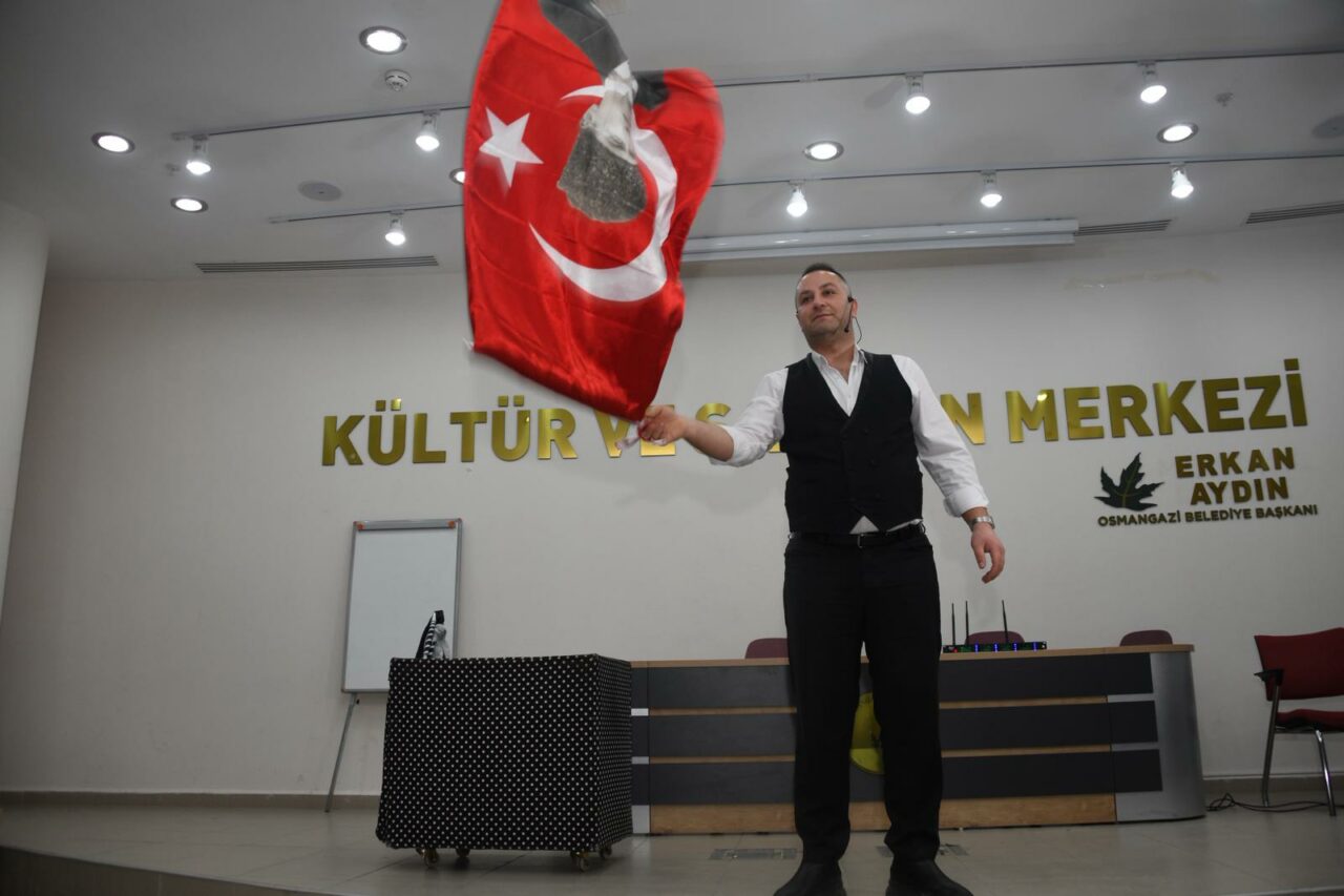 Bu kapsamda Demirtaş Kültür Merkezi’nde gerçekleştirilen sihirbazlık gösterisi, çocuklar tarafından yoğun ilgi gördü. Salonun büyük bir bölümünü dolduran çocuklar, sahnede sergilenen birbirinden eğlenceli ve şaşırtıcı gösteriler karşısında büyük bir heyecan yaşadı.