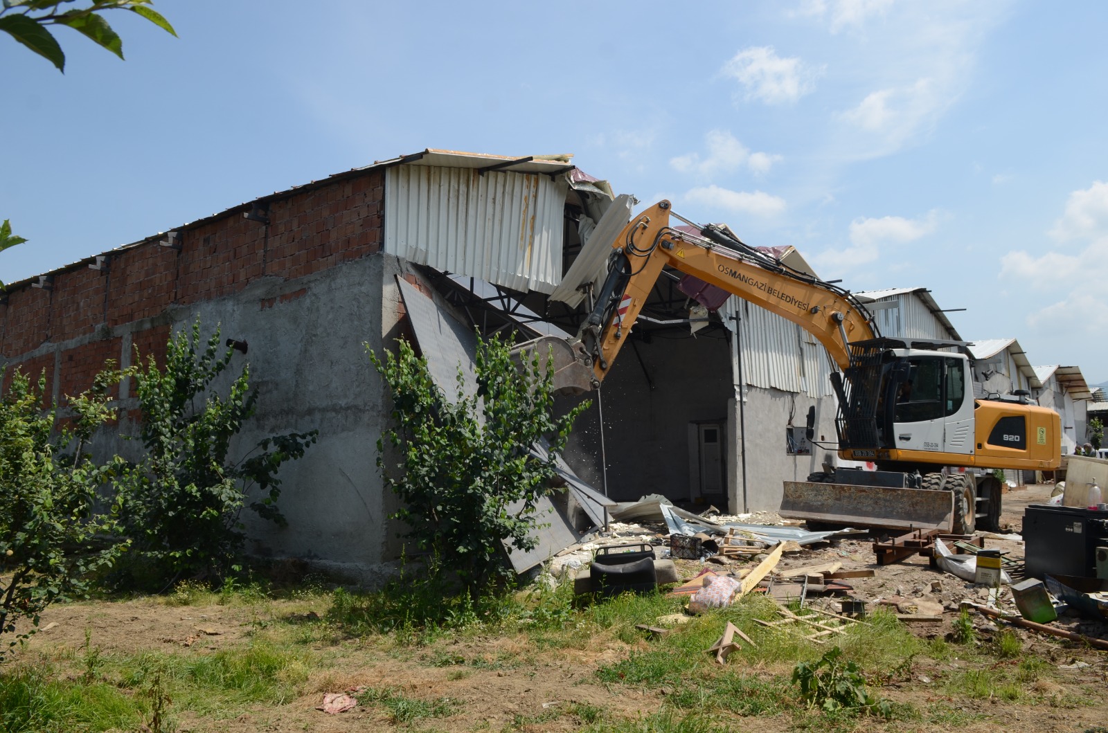 Tarım alanlarının korunması ve imara aykırı yapılaşmanın önüne geçmek adına örnek bir mücadele ortaya koyan Osmangazi Belediyesi, Mehmet Akif Mahallesi’nde kaçak olarak inşa edilen işyerini yıktı.