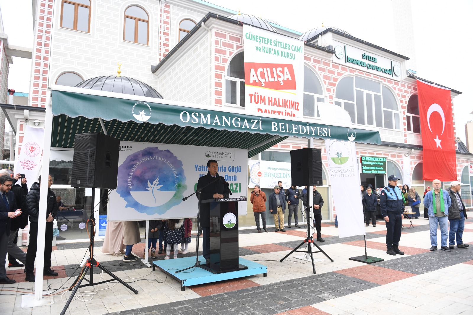 Kılınan namazın ardından Siteler İsmail Çolpan Cami ve çevre düzenleme çalışmaları düzenlenen törenle hizmete açıldı. Açılış töreninde konuşan Osmangazi Belediye Başkanı Mustafa Dündar, “Göreve geldiğimizde Güneştepe Mahallemizde yapılaşmalar yeni yeni başlamıştı. O günden bugüne Güneştepe, Bursa’nın cazibe merkezi oldu. Güneştepe, Hamitler ve Yunuseli, bölgesinde 45 binden fazla daireye oturma izni verdik. Deprem kuşağında yer alan bir ülkede ve şehirde yaşıyoruz. Geçtiğimiz yıl 11 ili ve 14 milyon vatandaşımızı etkileyen Kahramanmaraş merkezli depremleri yaşadık. Bizler deprem olmadan önce Güneştepe gibi ilçemizin farklı noktalarında yeni ve güvenli bir Osmangazi inşa ettik. Belediyemizin yaptığı planlar çerçevesinde modern bir şehir ortaya çıktı. Bu bölge güvenli konutların olduğu, nefes alabileceğimiz sosyal donatı alanlarına sahip bir mahallemiz” dedi.