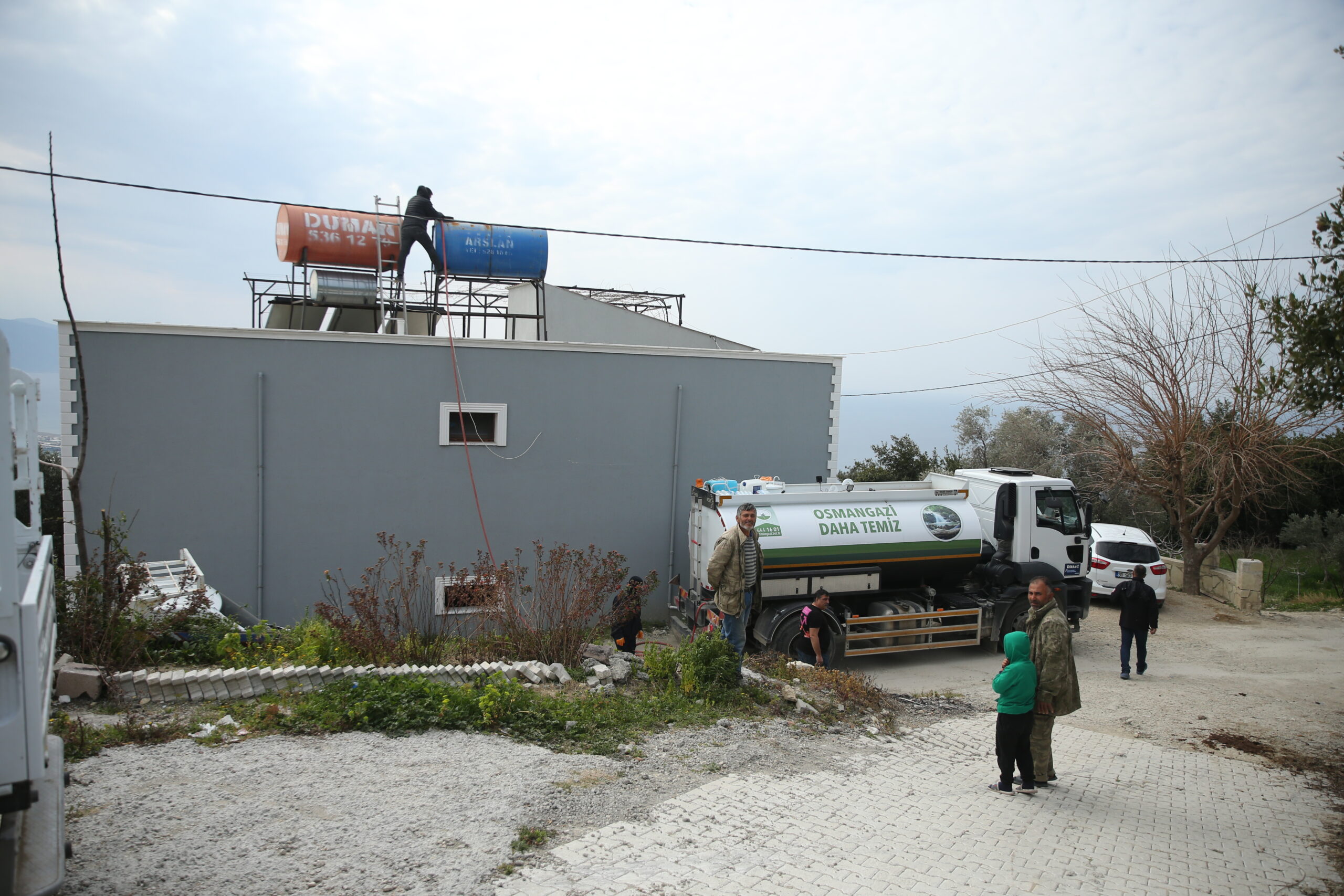 Ekipler, 17 ton kapasiteli arazözle günde 4-5 tur atarak ilçe merkezi ve kırsal mahallelerin içilebilir su ihtiyacını gideriyor, çadır ve konteyner kentlerde seyyar banyo, tuvalet ve mutfakların depolarının sürekli dolu olmasını temin ediyor.