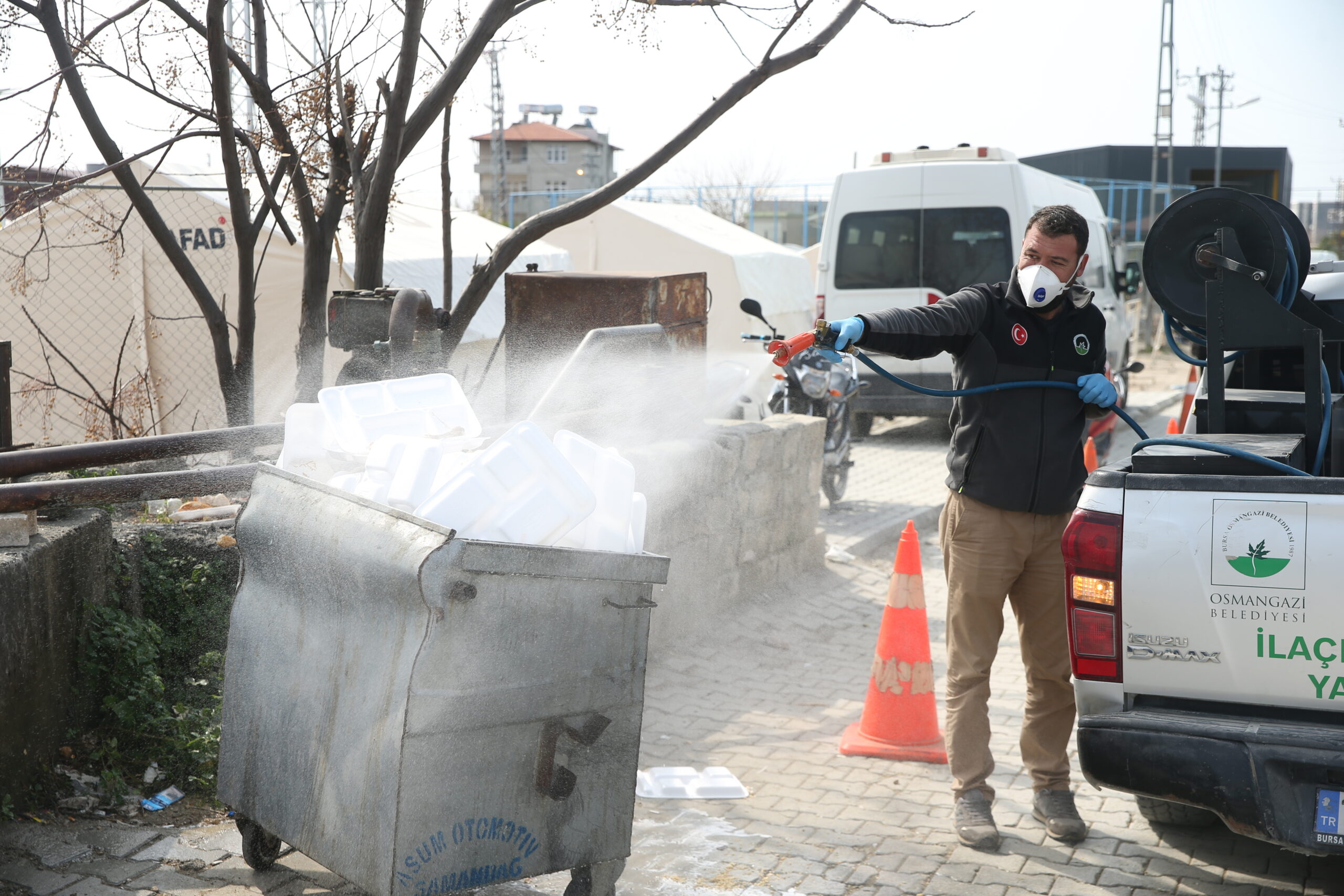 Samandağ Kültür Merkezi civarı, çadır kentler, kırsaldaki bazı mahallelere su dağıtımı, yolların yıkanması, süpürülmesi, ilaçlama, temizlik işleri yaptıklarını dile getiren Demir, Osmangazi yerine Samandağ’ın sokaklarını temizlediklerini anlattı.