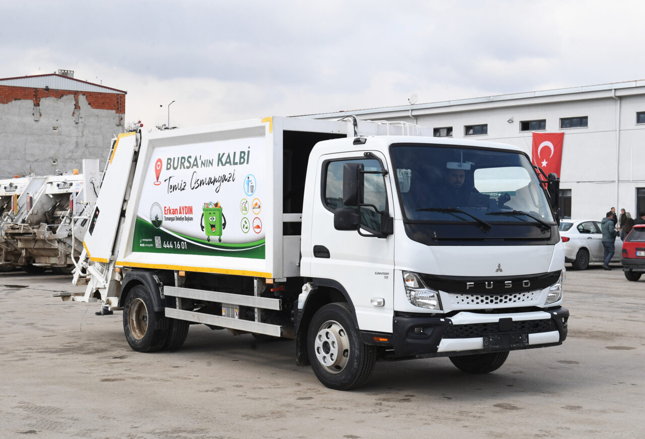 Temizlik işlerinde kullanılacak 9 adet 13 metreküp çöp kamyonu, 2 tane 7 metreküp çöp kamyonu, 3 adet kontrol aracı, 3 adet elektrikli mini çöp toplama aracı Osmangazi Belediyesi’nin araç filosuna dahil oldu.