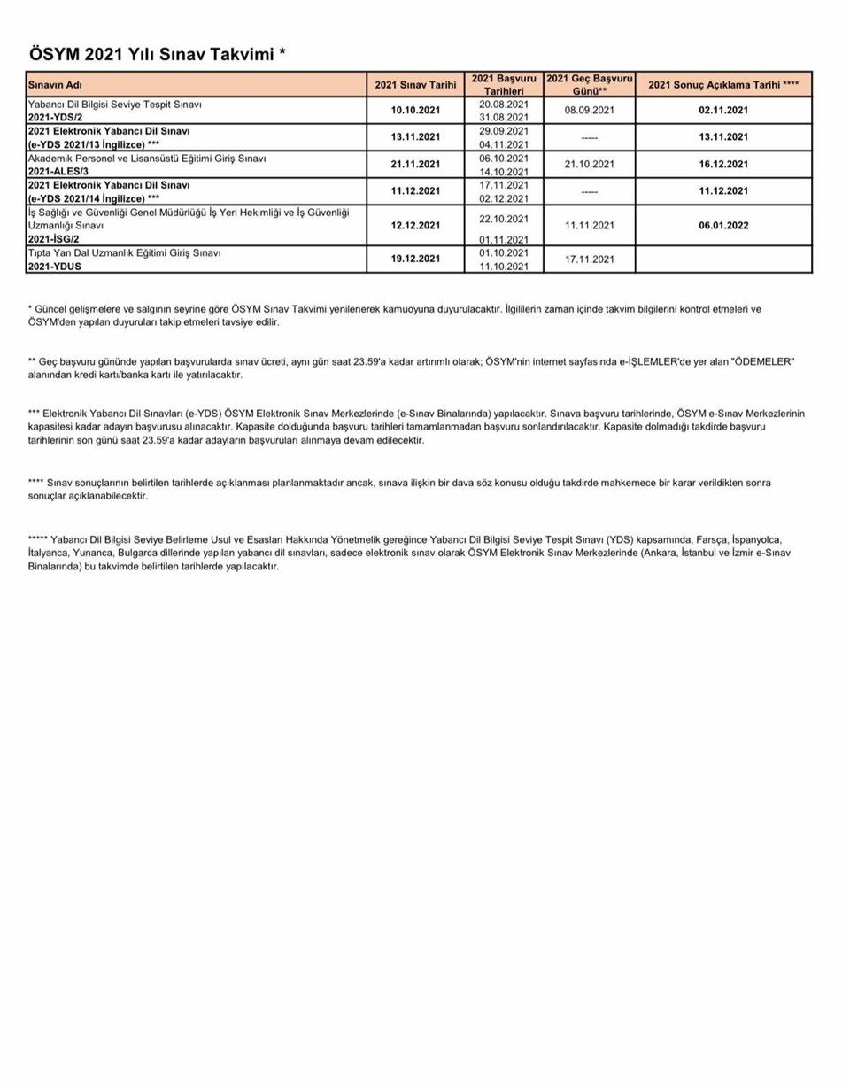 2021 yılında ÖSYM tarafından uygulanacak sınavların sınav tarihlerini, başvuru tarihlerini ve sonuç açıklama tarihlerini içeren 2021 Yılı Sınav Takvimi http://osym.gov.tr adresinden belli oldu.