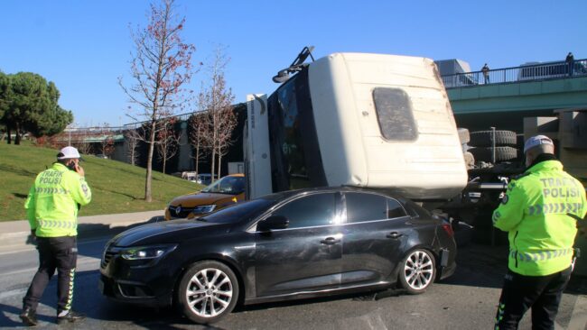 Edinilen bilgiye göre, 34 BJ 9030 plakalı hafriyat kamyonu sürücüsü Fatih Yeşilyurt (25), yan yoldan Piyalepaşa TEM Bağlantı Yoluna girerken, virajı alamayarak önünde bulunan Sefa Şahin’in kullandığı 34 FN 6594 plakalı otomobile arkadan çarptı. Çarpmanın etkisiyle savrulan kamyonun taş yüklü kasası yan yatarken, ön tarafı da otomobilin üzerine devrildi. Otomobil kaza sonrası kullanılamaz hale gelirken, sürücü Şahin, mucizevi şekilde burnu dahi kanamadan araçtan çıktı.