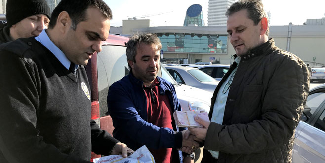 Olay, Nilüfer’e bağlı bir alışveriş merkezinin otoparkında meydana geldi. Edinilen bilgiye göre, alışveriş yapan Murat Güler (41), aracına bineceği sırada yerde bir poşet gördü. Poşeti kontrol eden Güler, içinde toplam 20 bin lira olduğunu gördü. Bunun üzerine Güler polisi aradı. İhbar üzerine harekete geçen polis ekipleri, Güler’in verdiği bilgilerden poşetin düşmüş olabileceği plakaya ulaştı. Araç sahibi Avukat Suat İnanır’a ulaşan ekipler, kendisiyle telefonla görüştü. Görüşmenin ardından olay yerine gelen İnanır, polisin sorduğu bütün sorulara cevap verdi. Para, imzalanan tutanağın ardından İnanır’a teslim edildi.