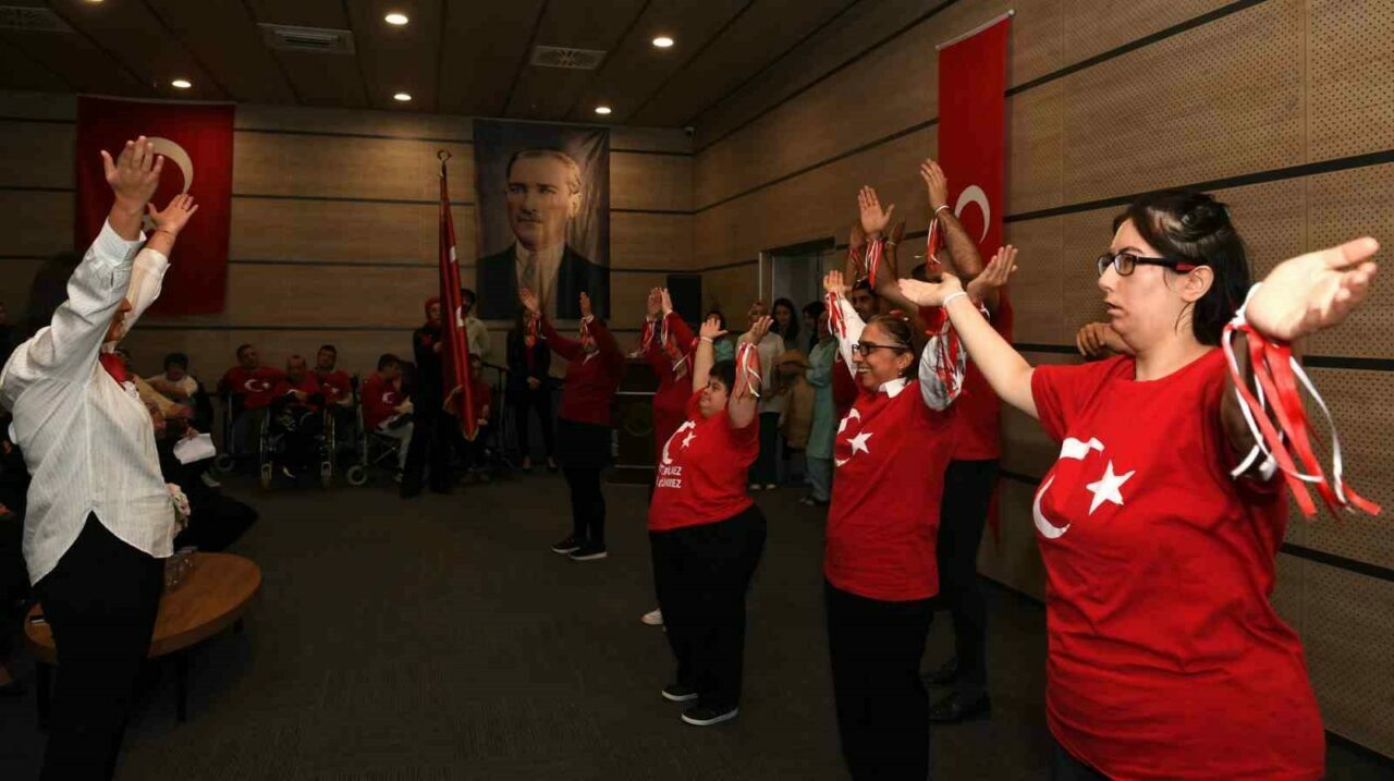 Osmangazi Belediyesi Engelliler Bakım Merkezi (OBAM)’da eğitim gören özel ihtiyaç sahibi bireyler, TUSAŞ’a düzenlenen hain terör saldırı nedeniyle erteledikleri 29 Ekim Cumhuriyet Bayramı kutlama programını gecikmeli de olsa gerçekleştirmenin mutluluğunu ve gururunu yaşadı. Cumhuriyetin 101’inci yılını, söyledikleri marşlar ve hazırladıkları koreografi ile kutlayan engelli bireyler, daha sonra üzerinde Atatürk’ün fotoğraflarının yer aldığı siyah pelerinleri giyerek ölümünün 86’ıncı yılında Atalarını saygı, minnet ve özlem ile andı.