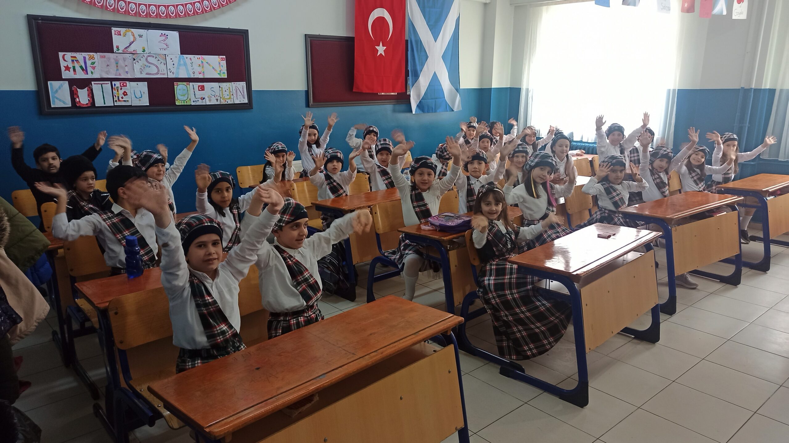 Sınıf öğretmeni Sevinç Solmaz ise, “23 Nisan bayram tatiline denk geldiği için biz bu şekilde etkinlik yapma karar aldık. Her katı kıtalara ayırdık ve çocuklara her sınıfa bir ülkeyi tanıtmasını sağladık. Çocukların ülkelerin gelenekleri ve görenekleri bizden ne gibi farklılıkları özellikleri var geçmişleri nasıl, çocukların bunların tanımasını sağlamaya çalışıyoruz” şeklinde konuştu.