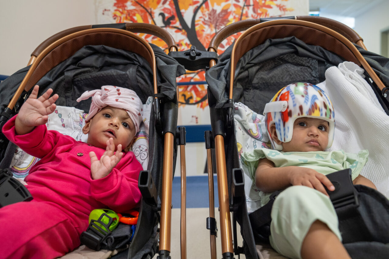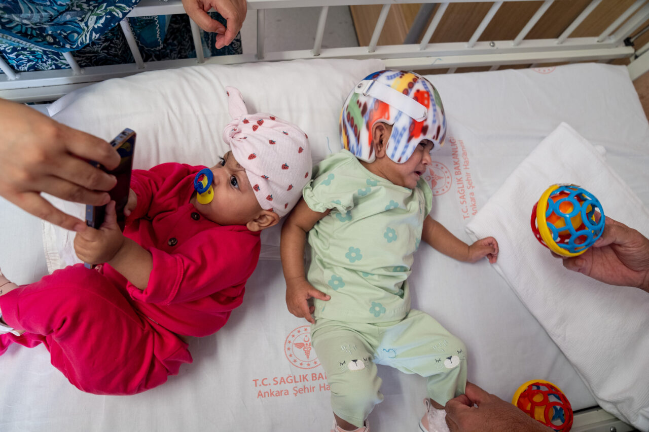 Pakistanlı Mirha ve Minal, Eylül 2023’te başlarından yapışık şekilde dünyaya geldi. Yaşadıkları ülkede evlatlarına tedavi imkanı bulamayan ailenin yardım çığlığına Türkiye kayıtsız kalmadı.