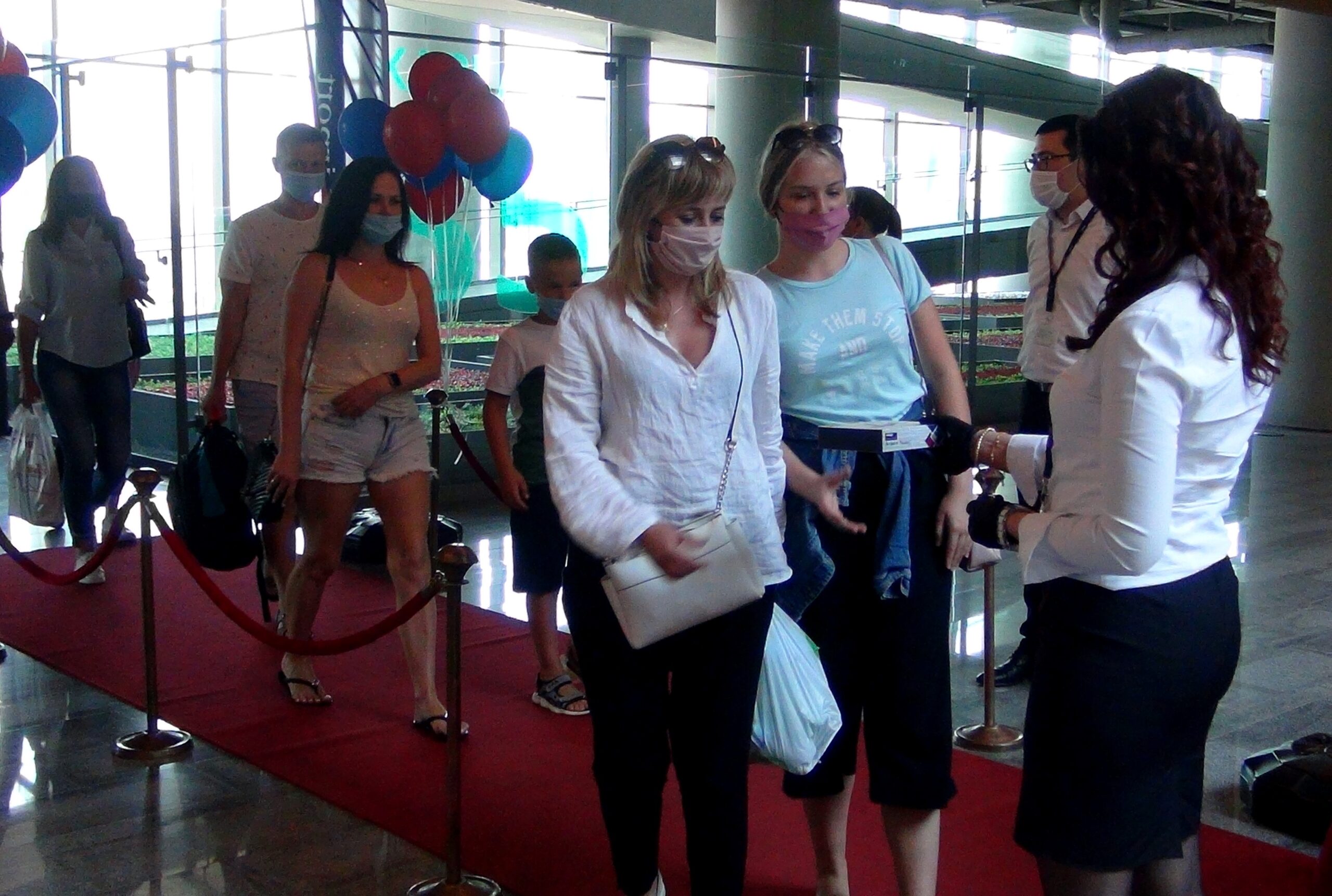 Gelen 183 kişilik kafile Anex tur tarafından Azur havayolları kanalı ile Charter seferi ile geldi. 183 kişilik turist kafilesi içinde çocuklar da bulunurken, gelen turist kafilesi havalimanı yolcu girişinde sağlık ekipleri tarafından kurulan kameralı hassa ateş ölçer cihazından geçtikten sonra pasaport kontrolüne geçtiler. Pasaport kontrolünde sosyal mesafeye dikkat eden Ukraynalı turistler buradan tatilini geçirecekleri otellere taşındı.
