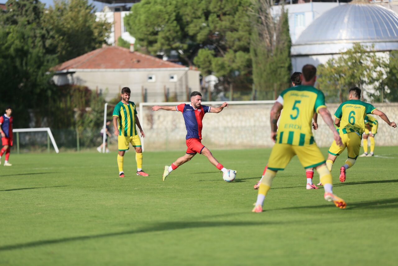 Mustafakemalpaşa İlçe Stadı’nda oynanan karşılaşmada 23. dakikada Serhan Yılmaz’ın golüne engel olamayıp 1-0 geriye düşen Bursa ekibi, 44’te Kerem Yaşa’nın golüyle skora 1-1’lik denge getirdi.