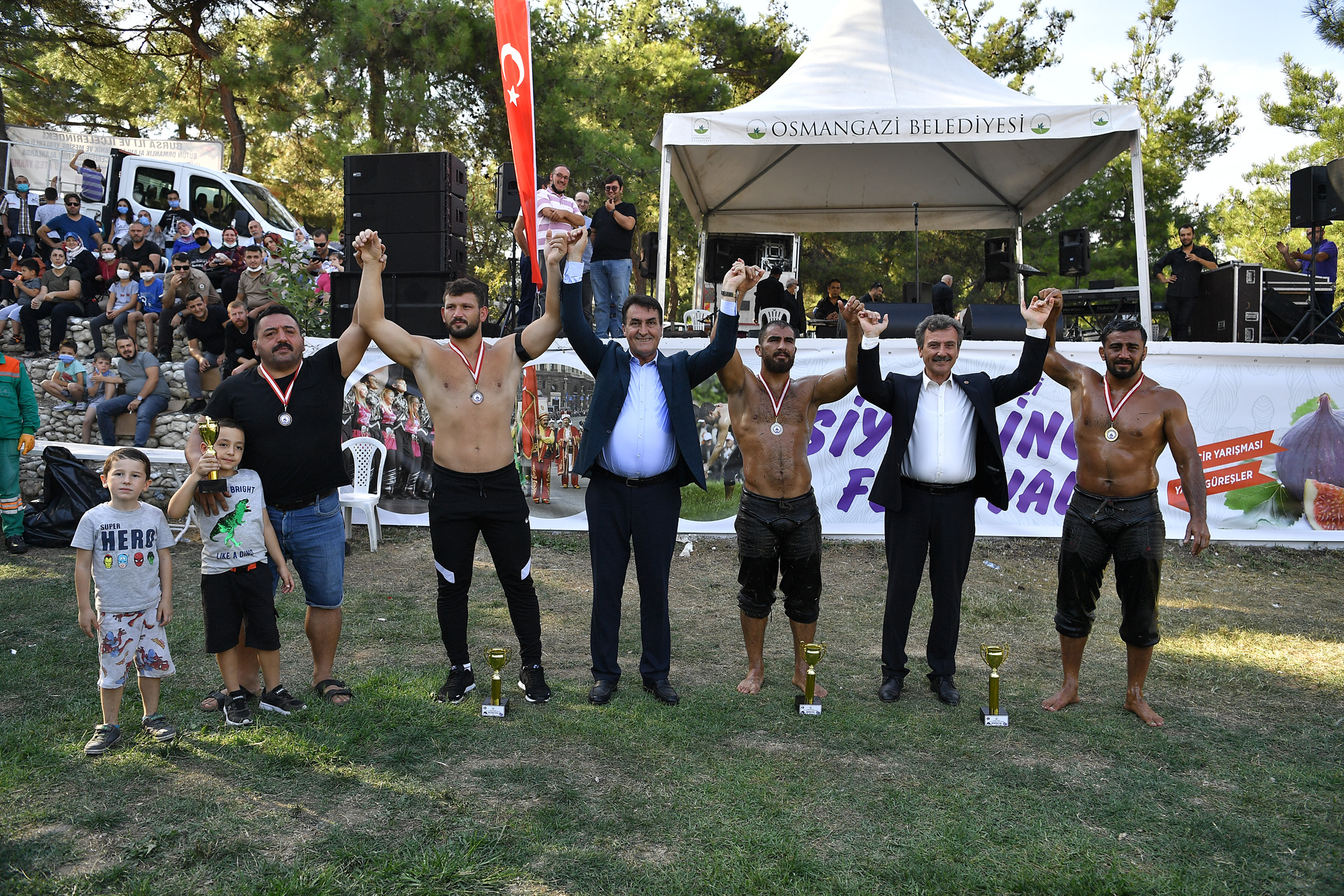 Osmangazi Belediyesi tarafından bu yıl 20’ncisi düzenlenen Siyah İncir Festivali, mehteran konseri ve halk oyunları ekibinin gösterileriyle adeta bayram havası yaşattı. Kıspetlerini giyerek yağlanan pehlivanlar, kule hakemlerinin çağrısıyla er meydanına çıktı. Minik, teşvik, tozkoparan, ayak, deste küçük, deste büyük, küçük orta küçük, küçük orta büyük, büyük orta, baş altı ve baş kategorilerinde ter döken güreşçilerin mücadelesi vatandaşların büyük beğenisini topladı.